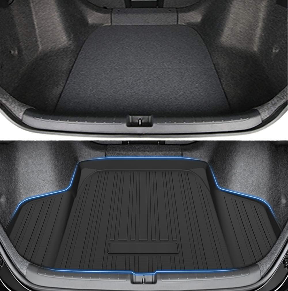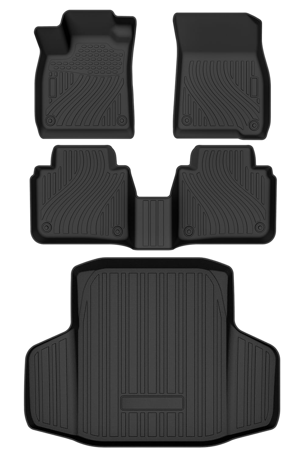 Tapetes para piso y protectores de carga compatibles con Honda Accord 2023 2024 que ofrecen una protección completa contra todo tipo de clima. Fabricados con material TPE duradero y sin olor, con canales y borde elevado para atrapar líquidos, suciedad, nieve, barro y arena, manteniendo limpio tu coche y tus zapatos durante todas las estaciones. La superficie texturizada antideslizante es fácil de limpiar, simplemente sacúdelos o límpialos con una manguera. Se envían doblados para facilitar el transporte, pero se restauran a su forma original una vez desdoblados.