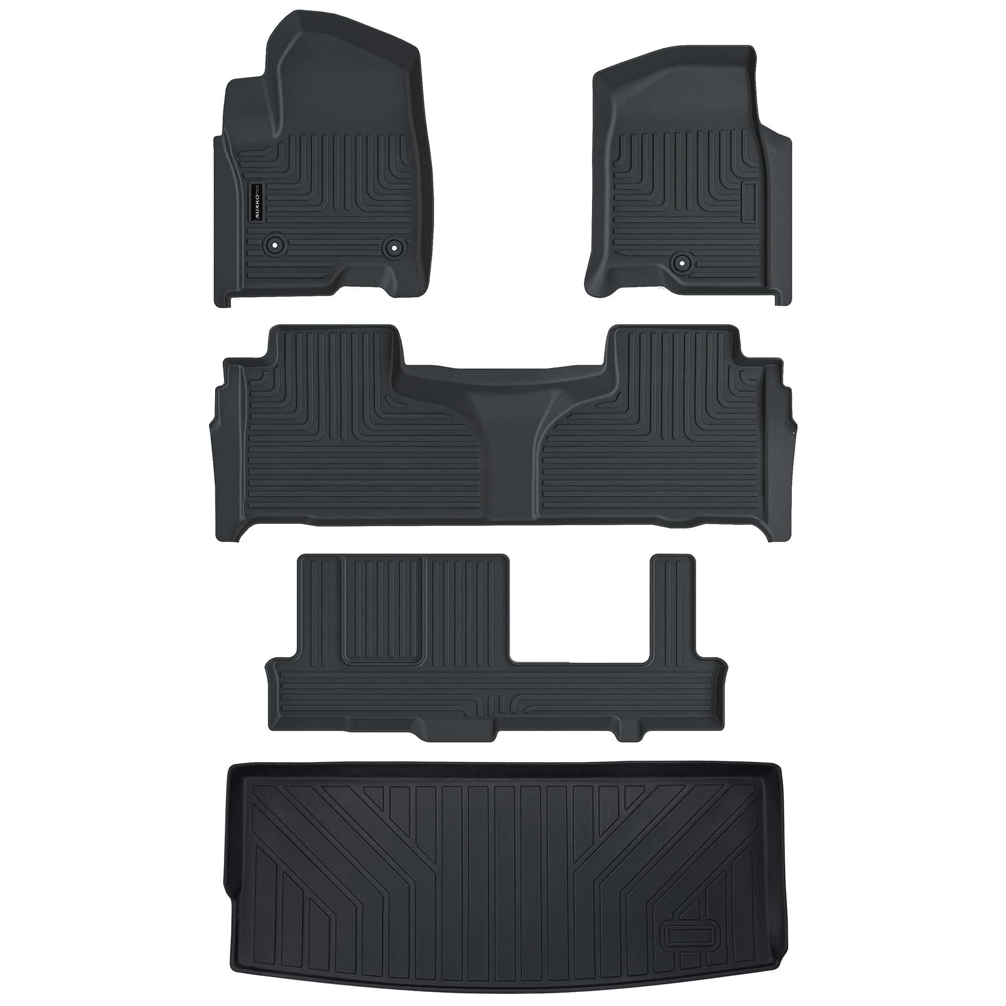 1. AJUSTE PERFECTO: Tapetes de piso y tapete de carga Auxko para Chevrolet Tahoe & GMC Yukon(No XL) 8 Asientos 2021-2025 son medidos con láser de alta precisión, lo que significa que nuestro ajuste personalizado ofrecerá una cobertura óptima y se verá como si los tapetes vinieran con su Chevy Tahoe & GMC Yukon(No XL) 8 Asientos 2021-2024. Auxko incorpora un sistema de retención especialmente diseñado y protuberancias antideslizantes en los tapetes para mantenerlos en su lugar.