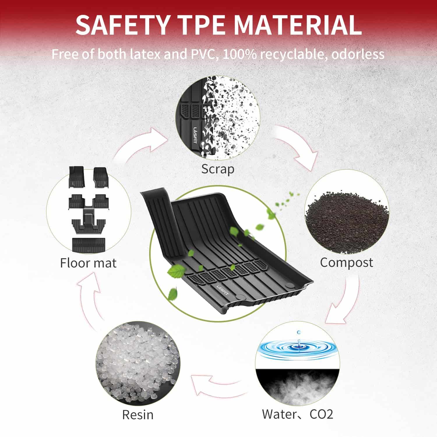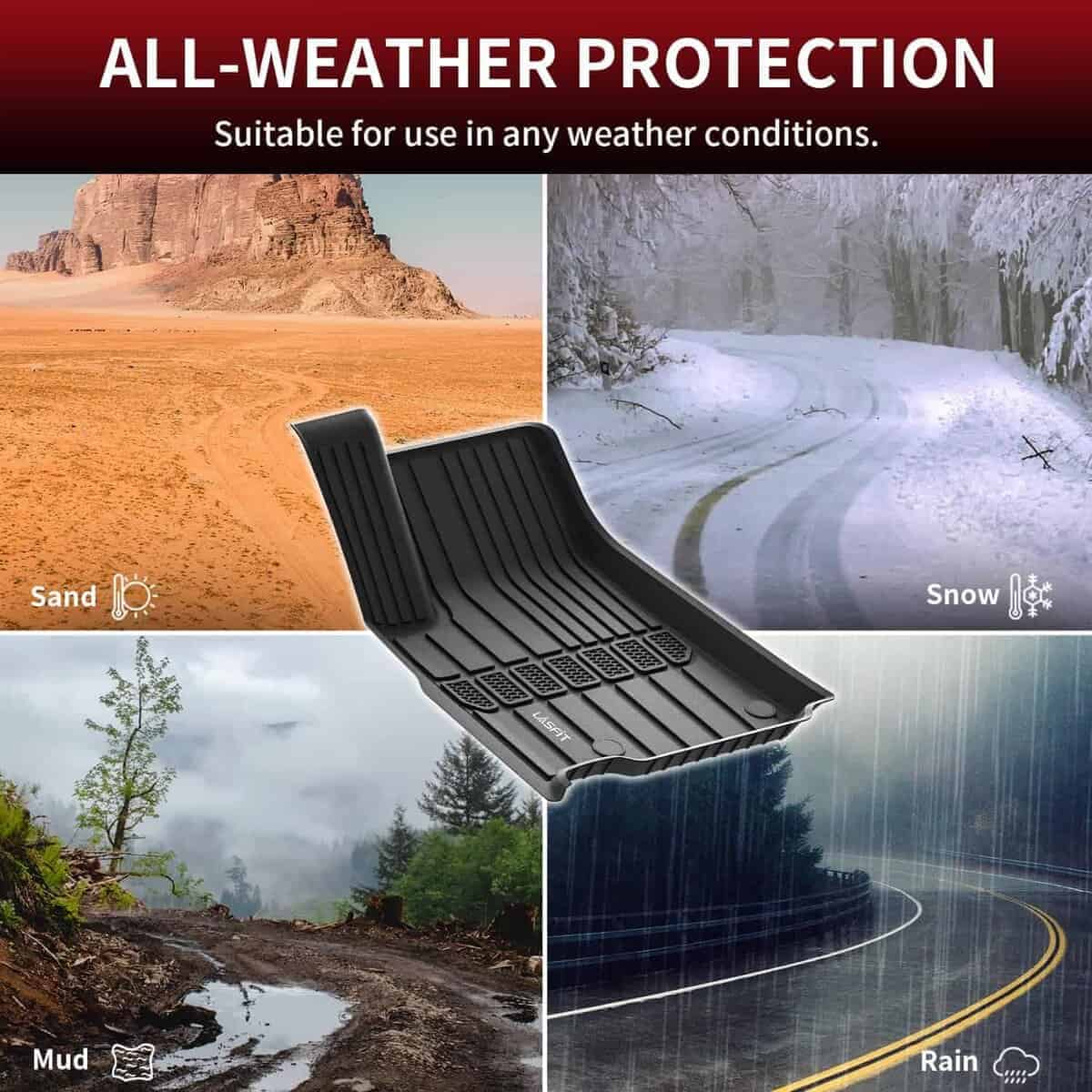 LASFIT ofrece tapetes para piso y un tapete para maletero diseñados específicamente para el Jeep Grand Cherokee L de 2021-2025 con 6 asientos. Estos tapetes se adaptan perfectamente a los vehículos que no tienen consola central, excluyendo los modelos de 6 pasajeros con consola central o de 7 pasajeros.