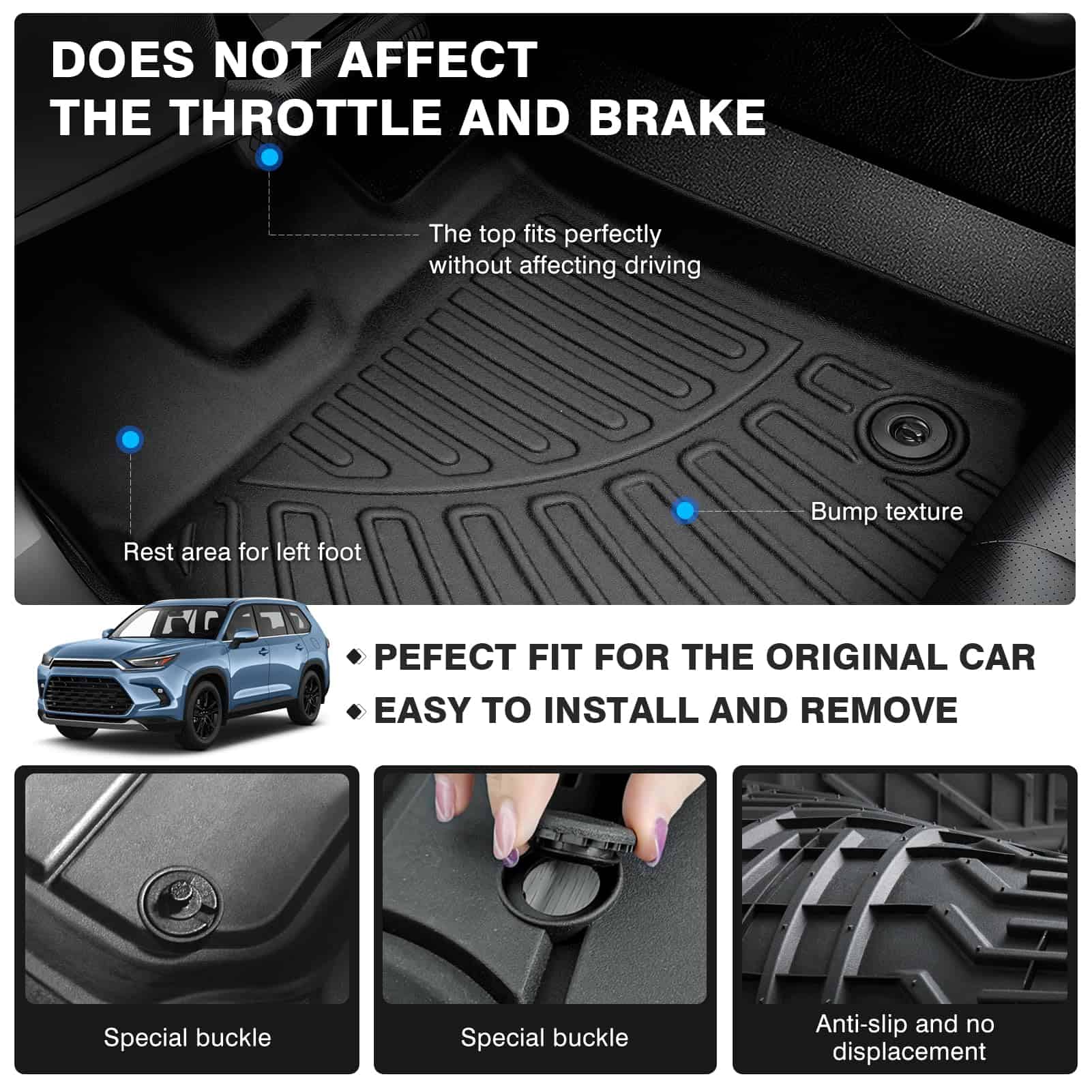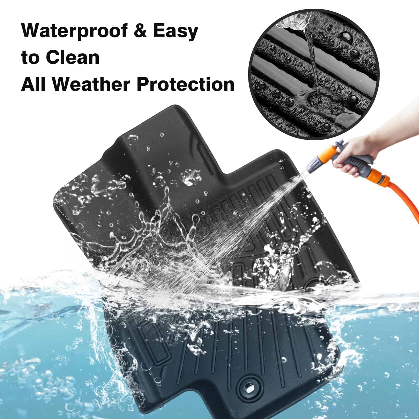 4. Protección para todos los climas contra nieve, lodo, arena, agua salada y más. – Labio anti derrames (Evita que los derrames lleguen a la alfombra).