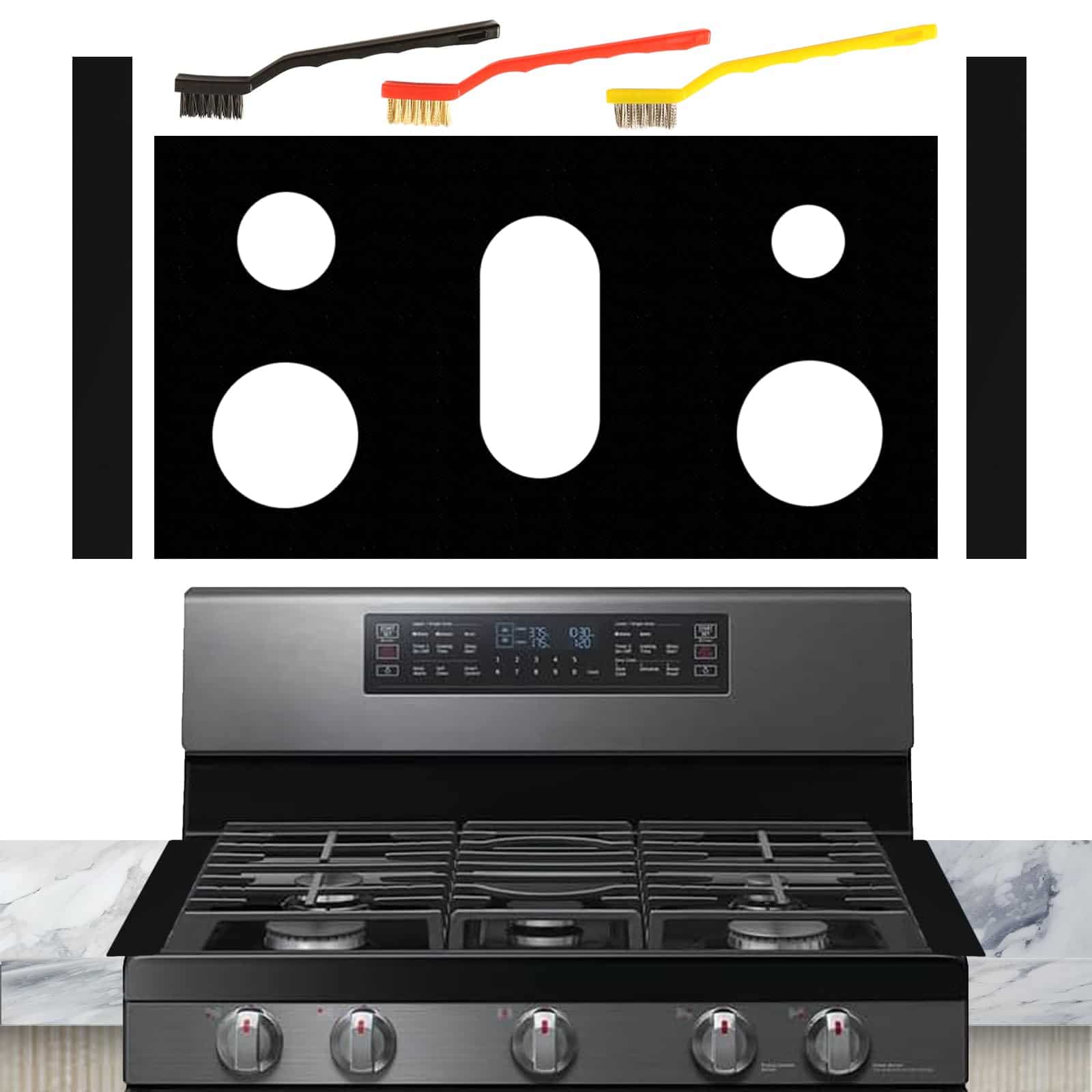 Presentamos los Tapetes para estufa de gas Samsung su accesorio de rango definitivo, diseñado específicamente para estufas de gas Samsung, Kitchenaid, Whirlpool y Frigidaire. Estos tapetes sirven como protectores completos para las estufas de gas, ahorrándole limpiezas tediosas después de cada sesión de cocción. Los tapetes para estufa de gas ofrecen una cobertura óptima, capturando todos los goteos, derrames y salpicaduras, dejando sus estufas limpias y relucientes. Elaborados con material resistente al calor y fácil de limpiar, estos tapetes son duraderos y reutilizables, prometiendo longevidad y protección constante. Lo más importante, están libres de químicos dañinos, garantizando un entorno de cocción seguro. Este protector de estufa de gas Kitchenaid cubre sus necesidades de protección para su estufa de gas, y experimenta la comodidad de una estufa de gas limpia, brillante y bien protegida. Elija hoy los revestimientos de la encimera para quemadores de gas Tapetes para estufa de gas, para un viaje de cocción sin problemas y seguro!