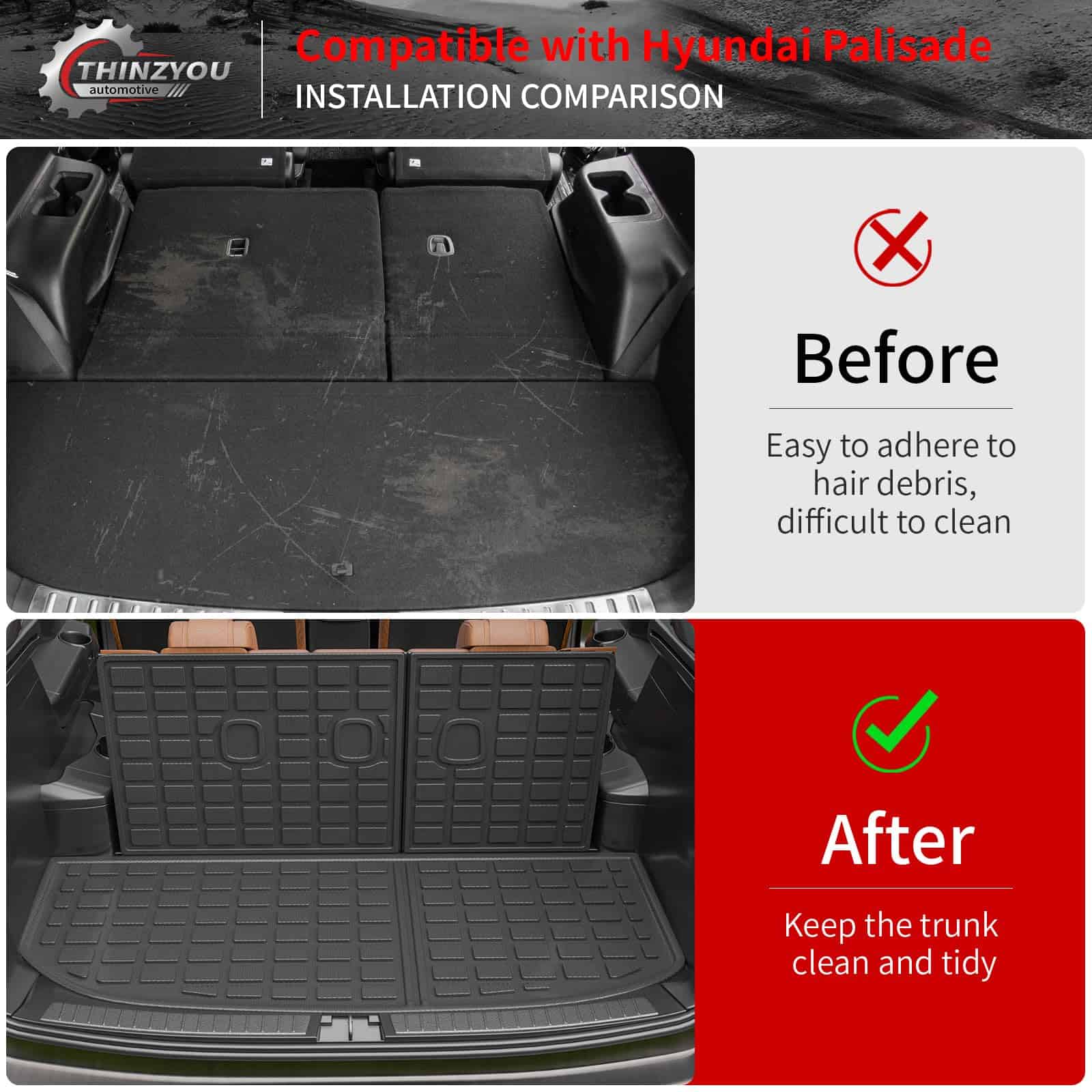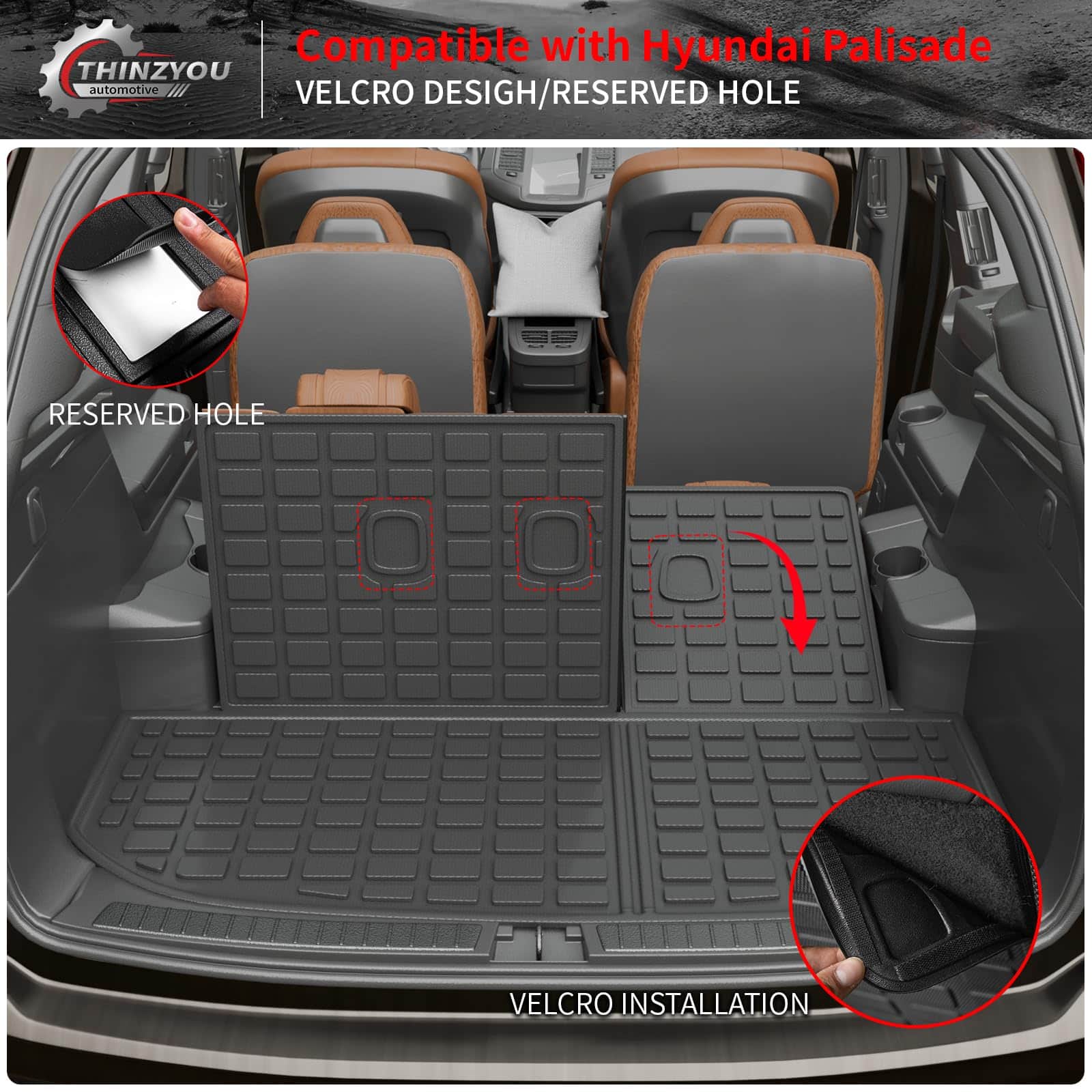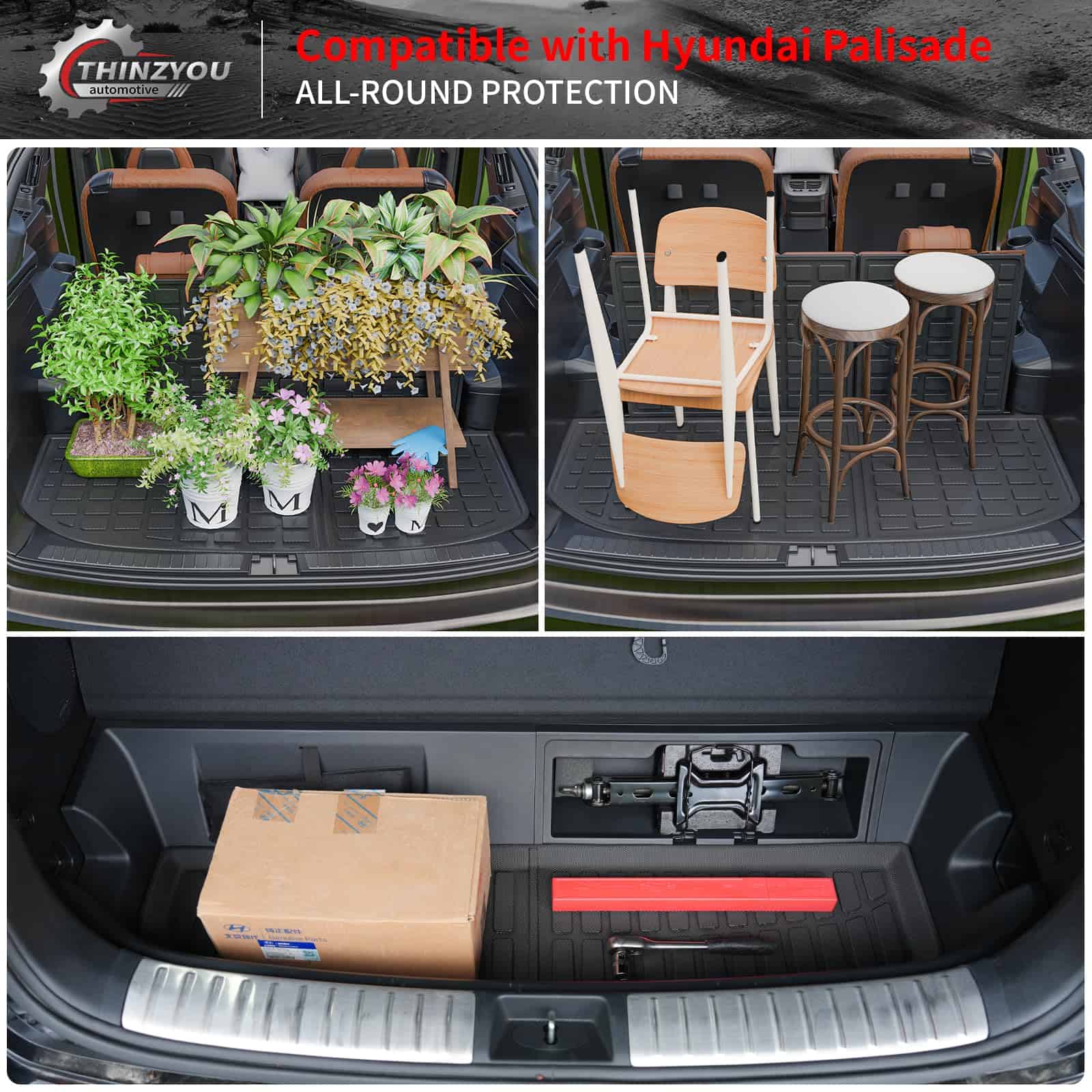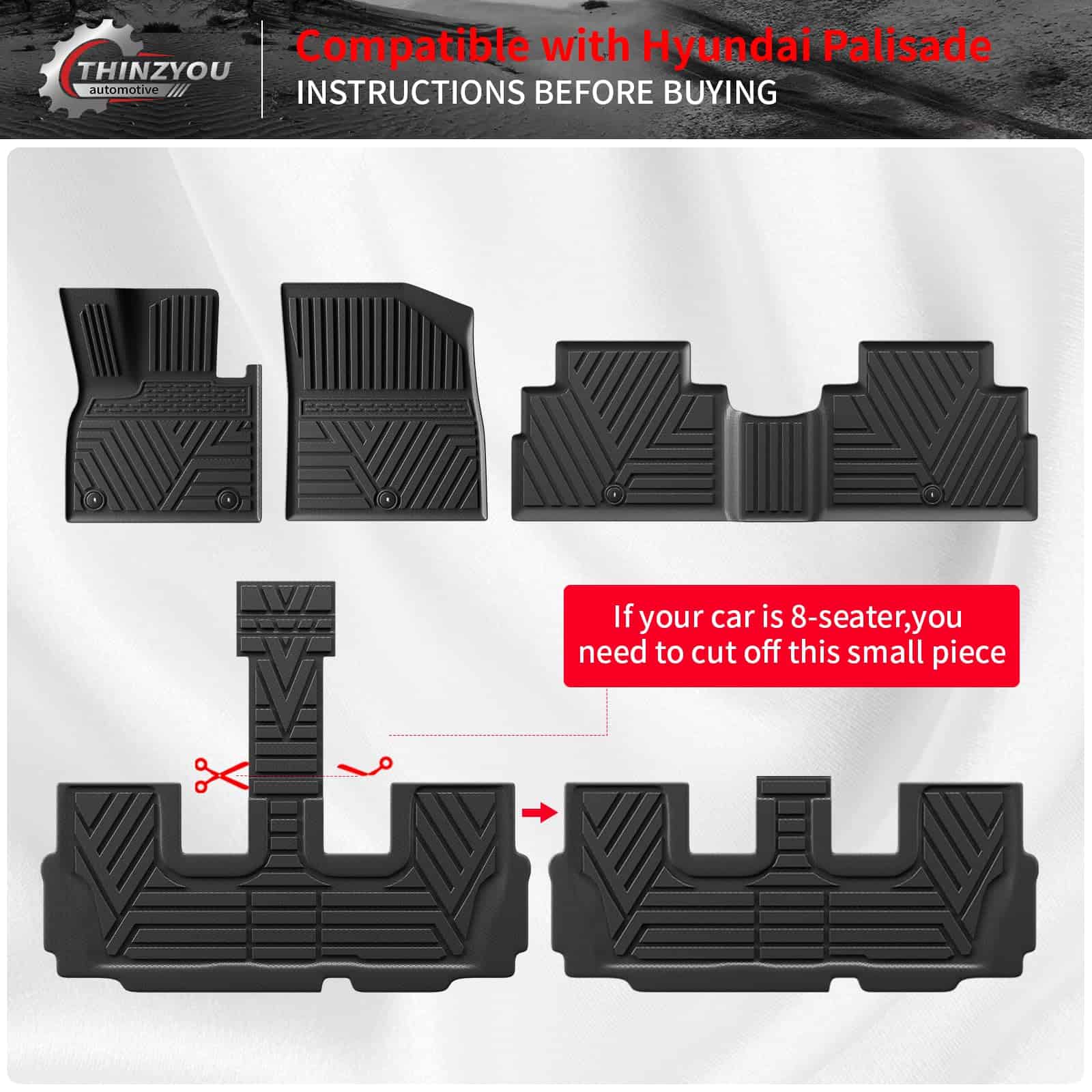 1. Compatibilidad: Estos tapetes de carga son adecuados para Hyundai Palisade 2020 2021 2022 2023 2024 2025 con tercera fila, ¡son adecuados para 7 y 8 asientos!