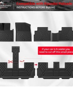 2. Nota de instalación de tapetes: Cuando tu Palisade tiene 8 asientos, es posible que no necesites usar la pieza que conecta la segunda y tercera filas; Cuando tu Palisade tiene 7 asientos, instala la pieza que conecta la segunda y tercera filas. Por favor, solo retira la cinta blanca y no retires la capa adhesiva negra.