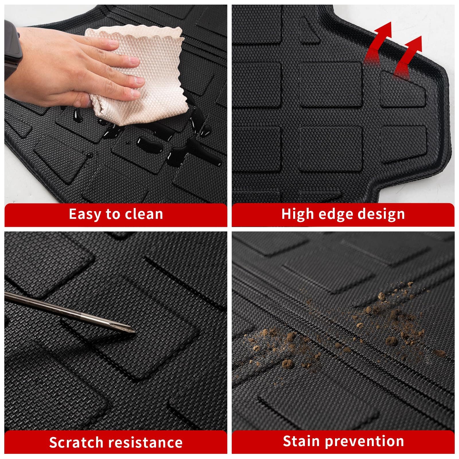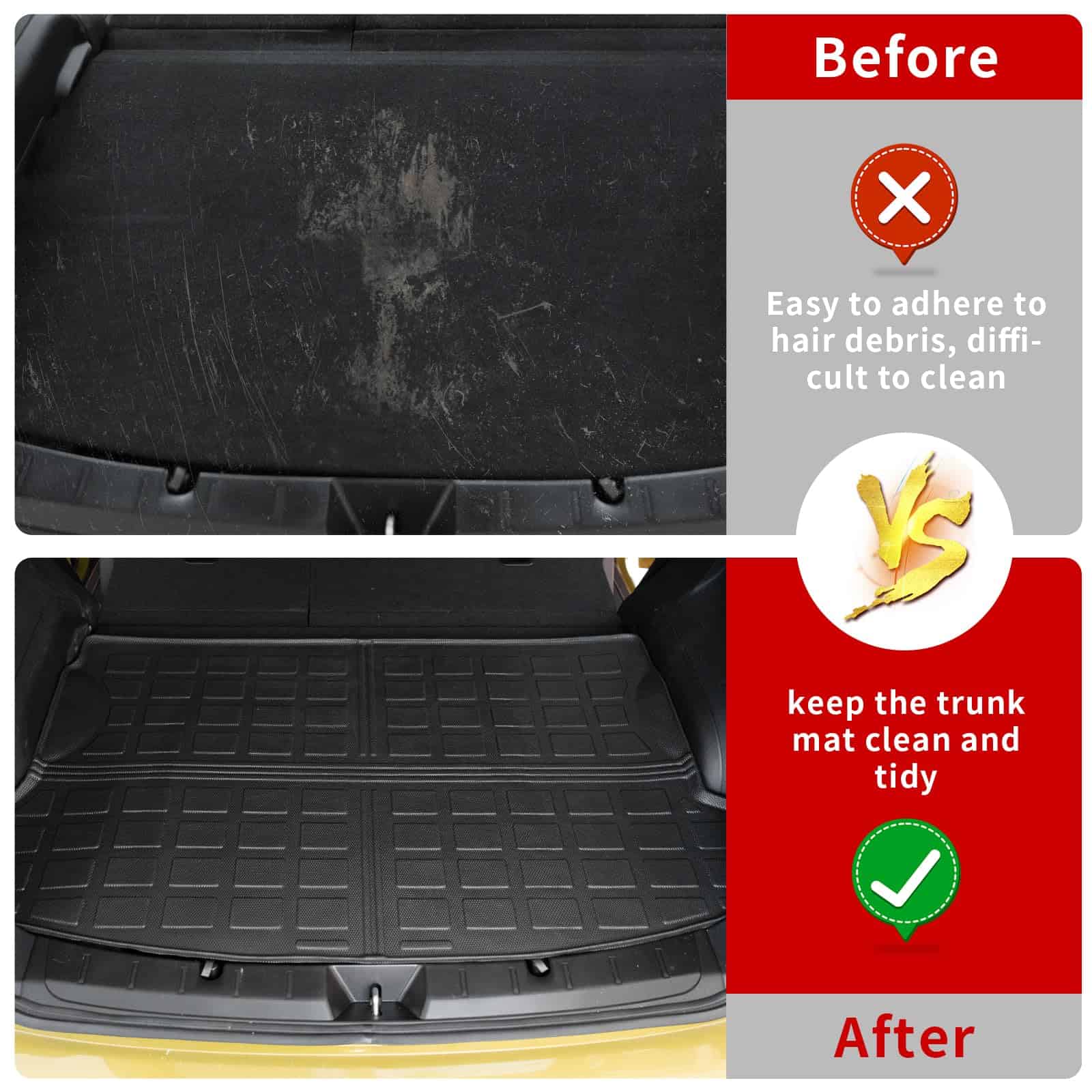 4. Instalación fácil: Muy fácil de instalar y quitar. Instale el forro de maletero directamente en el maletero sin ninguna otra herramienta o corte. Cuando desee limpiarlo, sáquelo y enjuáguelo con agua o una toalla.