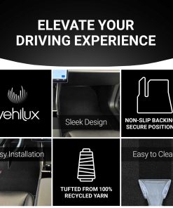 Además de su compromiso con el medio ambiente, los tapetes Vehilux para Tesla Model Y también están diseñados para su comodidad y conveniencia. Los tapetes a medida se adaptan perfectamente a su Tesla Model Y y cuentan con costuras duraderas que resisten los viajes por carretera más duros, los desplazamientos diarios y todos sus viajes. Elija los tapetes Vehilux y obtenga protección de primera calidad para su Tesla Model Y.