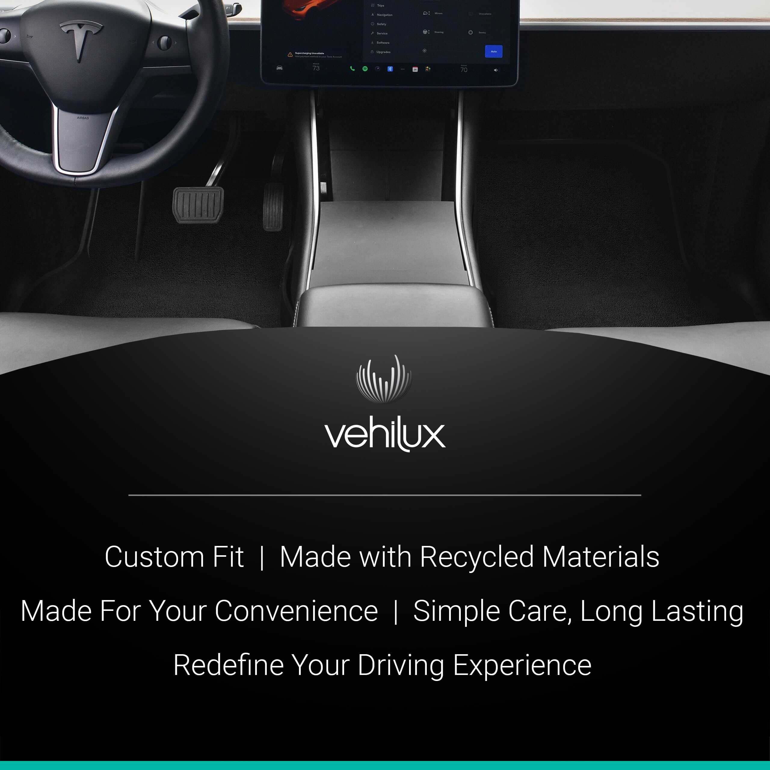 Tapetes Vehilux para Tesla Model Y – Hechos con Material Reciclado – Tapetes a Medida – Accesorios para Tesla