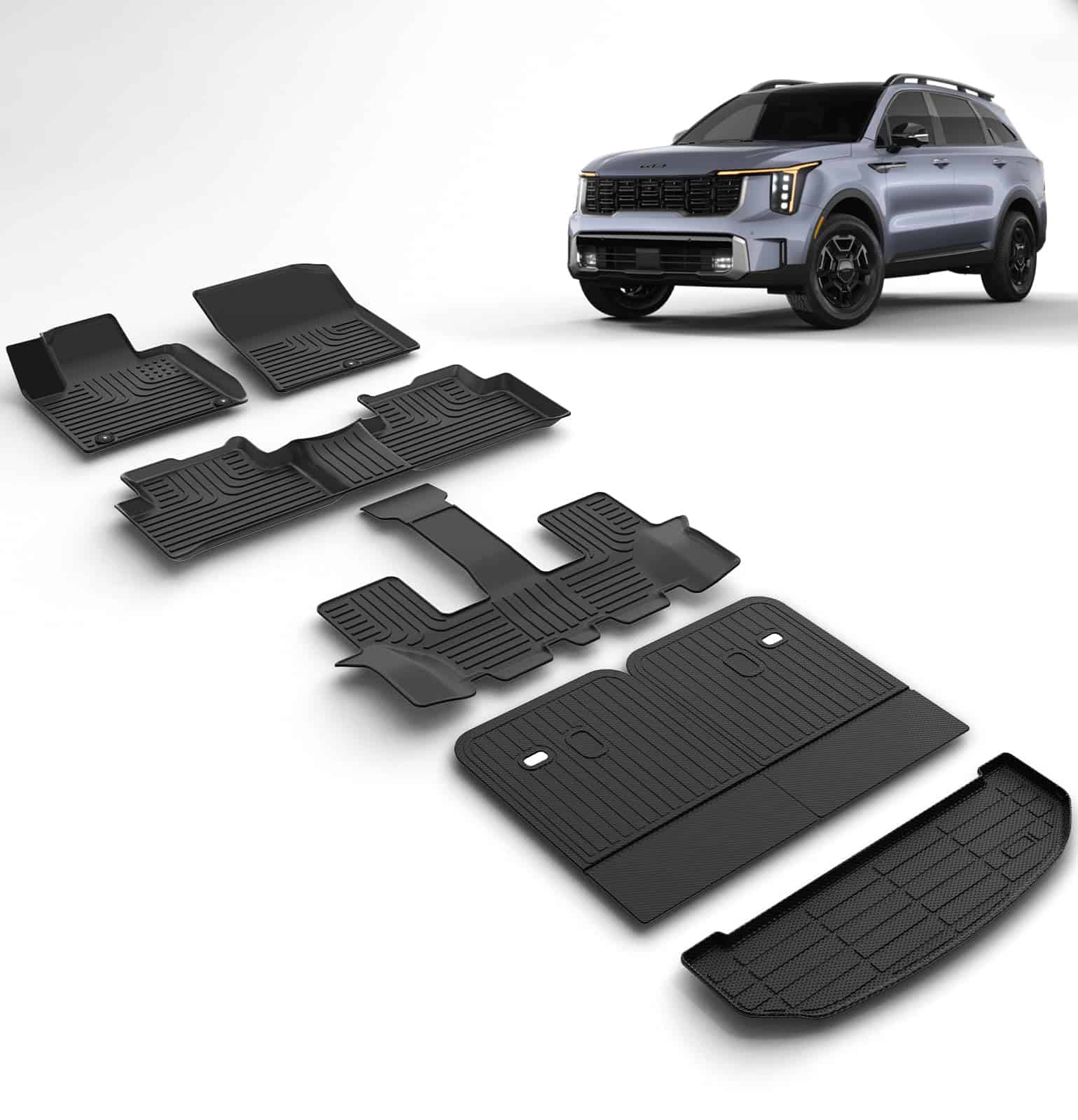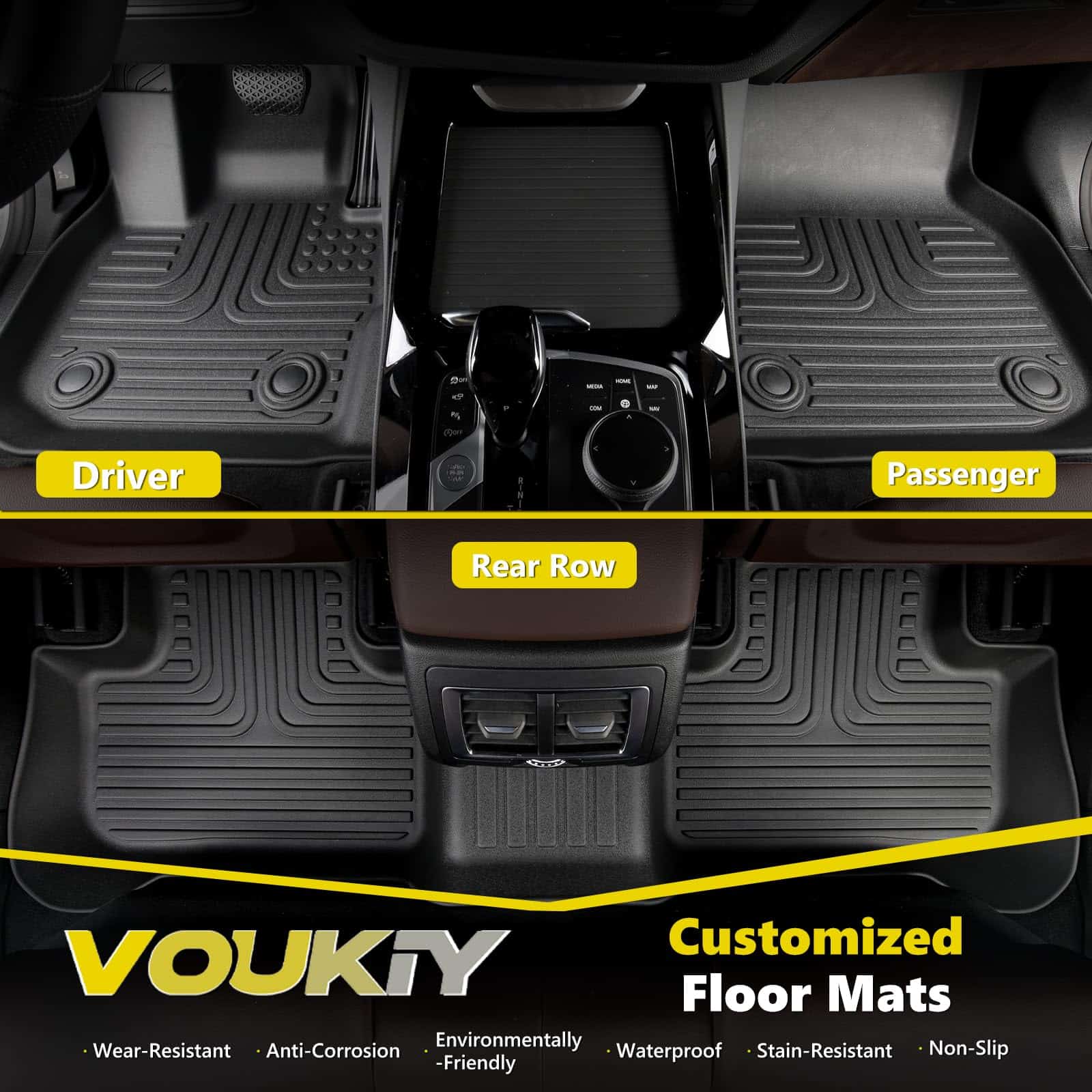 VOUKIY Floor Mats & Backrest Mats & Cargo Liner son la opción perfecta para proteger y mantener el interior de su Kia Sorento impecable. Los tapetes se adaptan con precisión a los modelos de 2021 a 2025, excluyendo los híbridos, gracias a un escaneo láser en 3D que garantiza un ajuste perfecto sin atascamientos ni movimientos no deseados. Están fabricados con material TPE ecológico que no emite olores desagradables, incluso a temperaturas extremas, asegurando un ambiente más seguro y saludable para usted y su familia. Estos tapetes ofrecen una protección integral contra todo tipo de clima, resistiendo desde la lluvia y la nieve hasta el sol intenso sin deformarse. Además, su diseño fácil de limpiar y de instalar los convierte en una elección conveniente y práctica para mantener su vehículo limpio y protegido en todo momento. No se preocupe por la calidad, ya que VOUKIY ofrece un excelente servicio postventa para resolver cualquier problema que pueda surgir. Asegure la mejor protección y calidad para su Kia Sorento con los tapetes VOUKIY y disfrute de un interior impecable en todo momento.