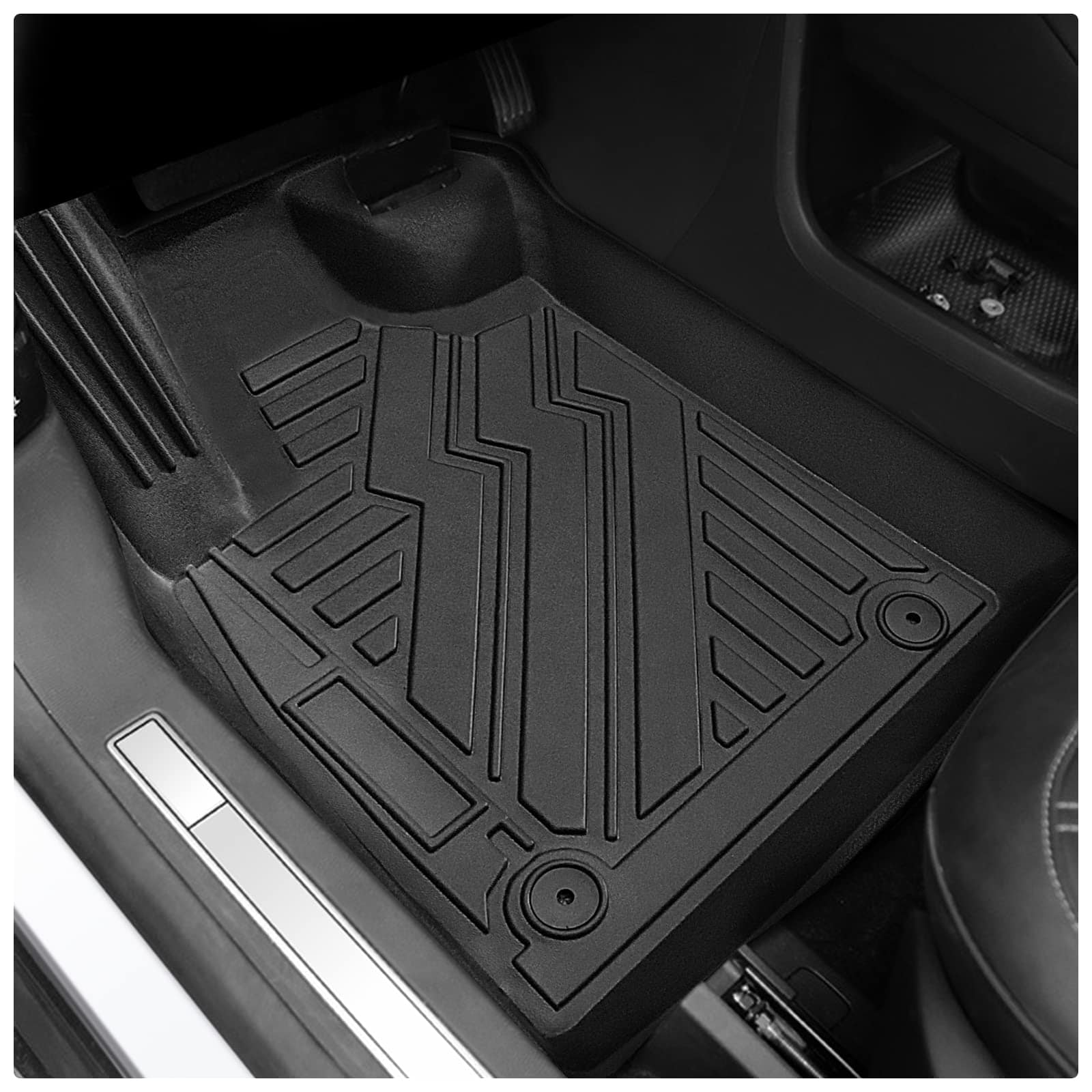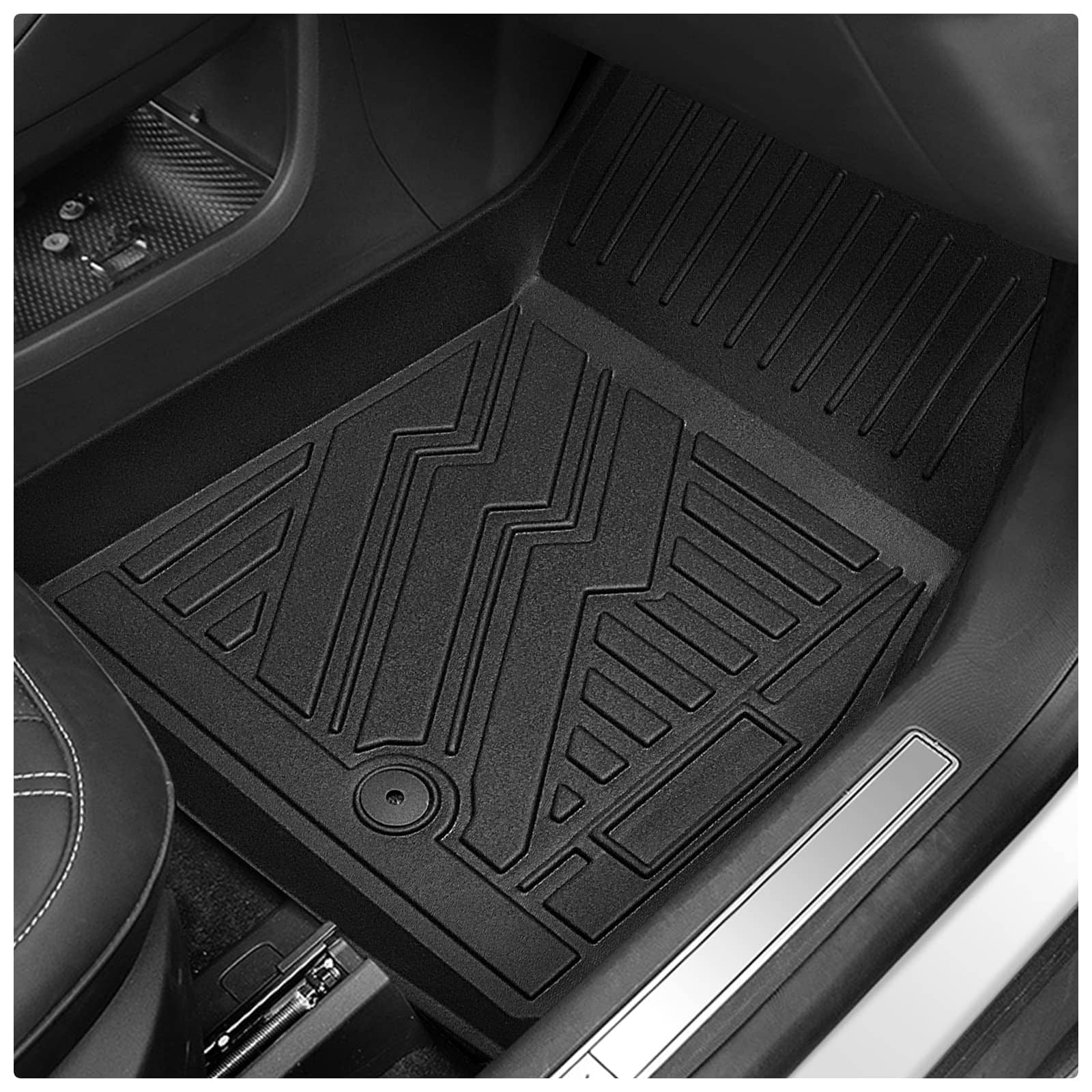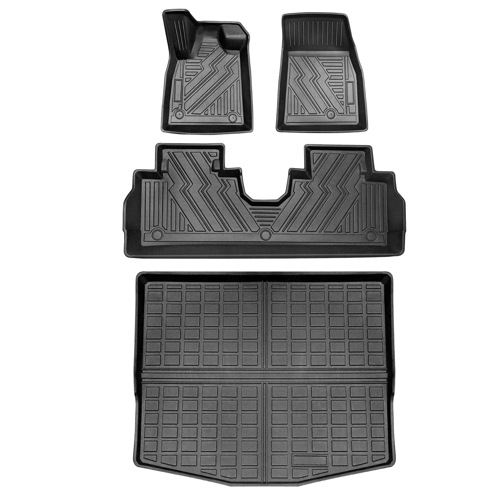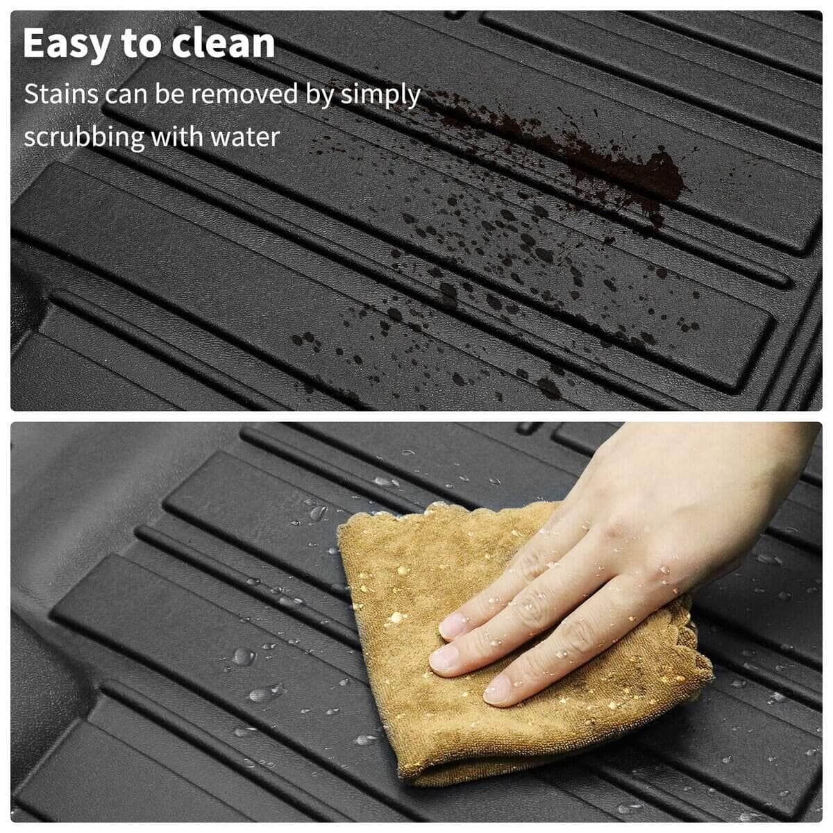 Juego de tapetes y protector de carga Vanseno diseñado específicamente para adaptarse al Ford Mustang Mach-E 2021 2022 2023 2024 2025. Este juego incluye tapetes delanteros para el conductor y el pasajero, tapetes traseros y tapetes de maletero, todo en un juego de 4 piezas. Los tapetes están hechos de goma TPE de alta calidad, que es inodora, segura y sanitaria. Son resistentes al frío y al calor, impermeables y a prueba de nieve, lo que los hace ideales para todas las estaciones. La superficie de los tapetes es resistente a la intemperie y a las manchas, lo que facilita la limpieza con un paño húmedo o una manguera. El diseño antideslizante y la disposición razonable mejoran la estética interior de su automóvil, mientras que proporciona protección contra el polvo, la suciedad, la sal, la lluvia y la nieve. Mantenga limpios y protegidos los pisos de su vehículo con este juego de tapetes y protector de carga de Vanseno. ¡No deje que el clima afecte la limpieza y la apariencia de su vehículo, obtenga estos tapetes hoy!