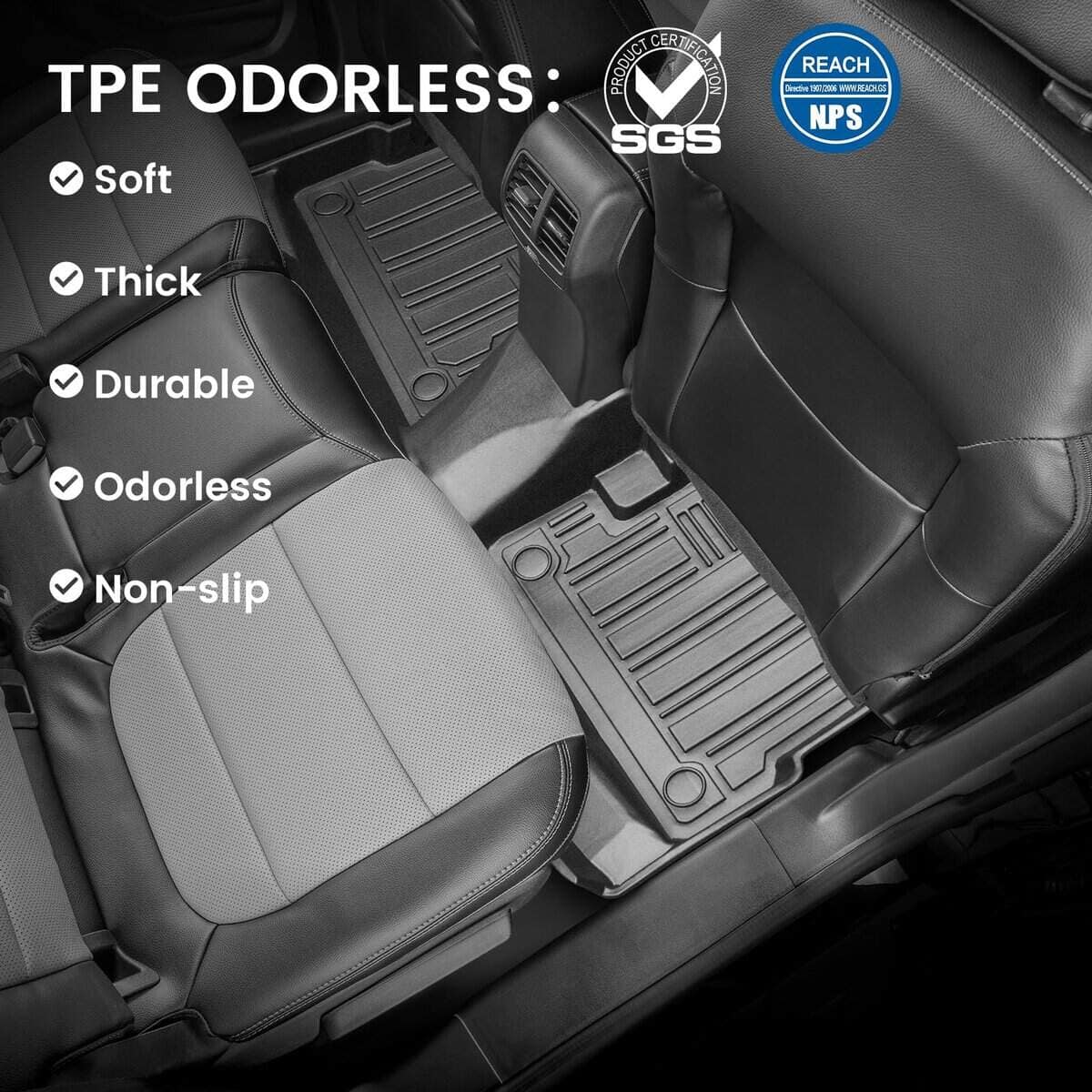 4. Protección en todo clima: Para brindar protección completa al interior de su vehículo contra el polvo, la suciedad, la sal, la lluvia, la nieve, y mantener los pisos de su vehículo limpios e impecables durante todas las estaciones.