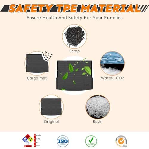 2. MATERIAL TPE: Los tapetes de piso para Hyundai Santa FE 2019 están hechos de materiales de Elastómero Termoplástico (TPE), que hacen que los tapetes de coche sean suaves y duraderos. Este tipo de materiales de alta calidad incluso en condiciones climáticas extremas.