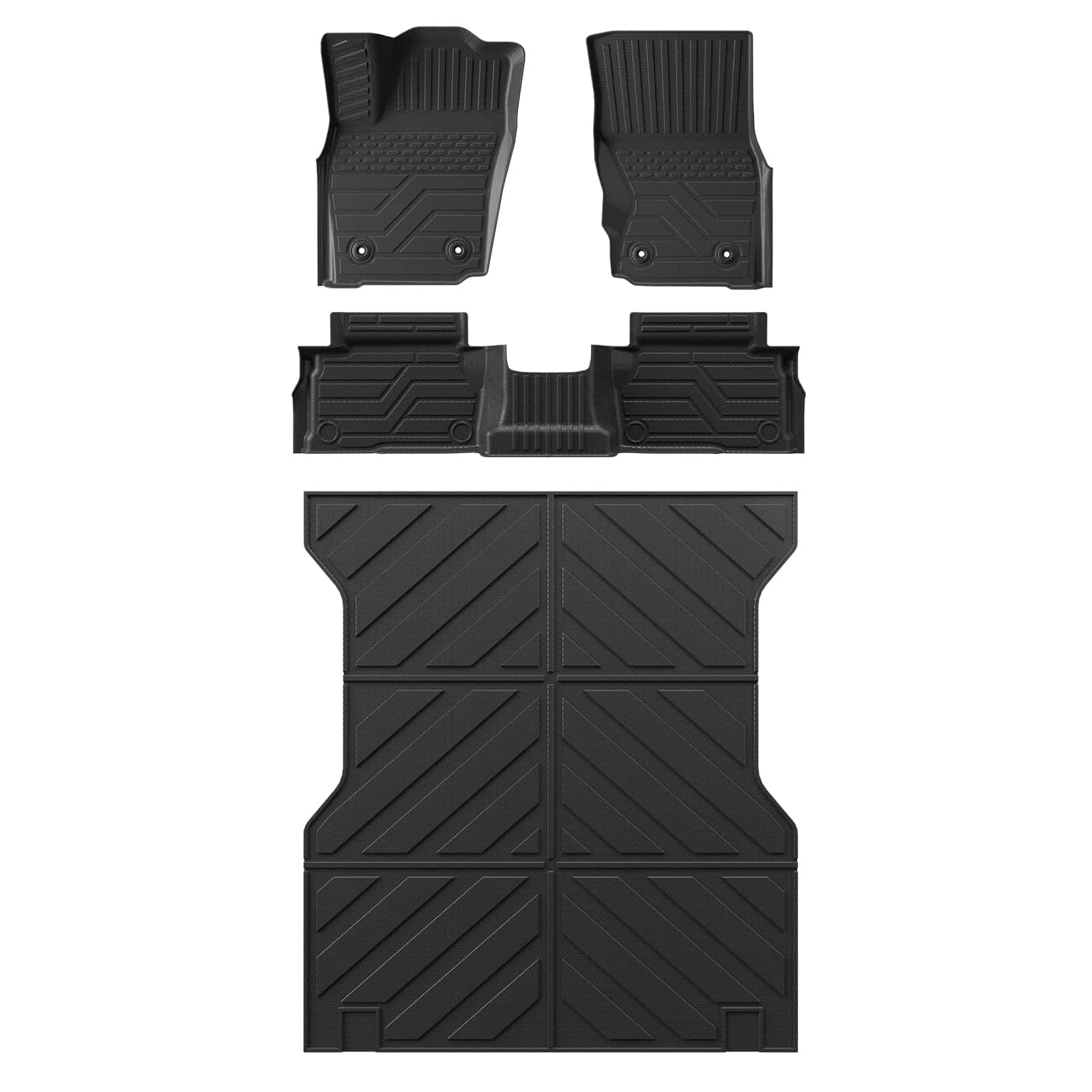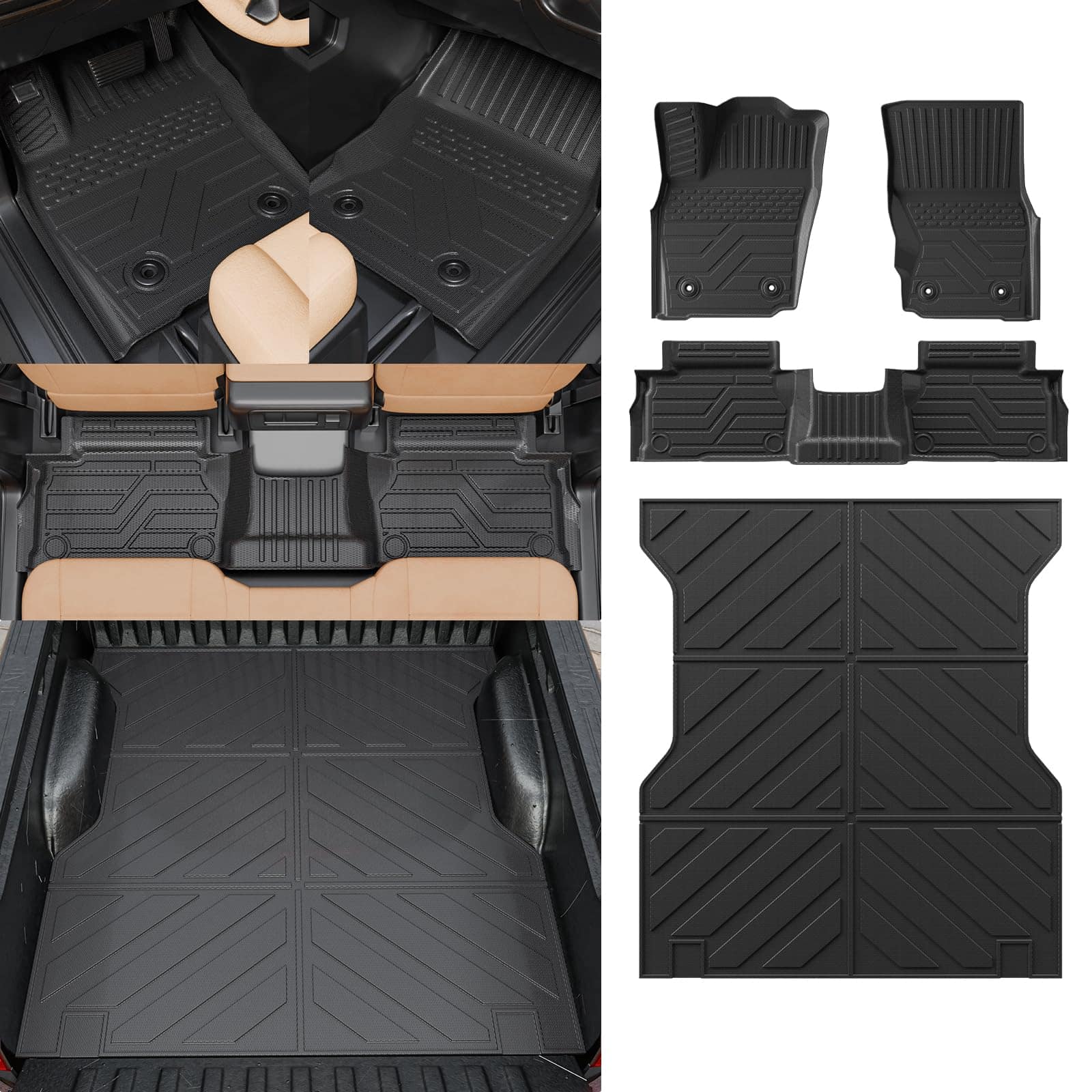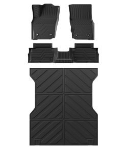 1. Ajuste: Según el diseño original del automóvil, nuestros tapetes de piso y alfombrilla de cama son compatibles con Toyota Tacoma 2024 2025 de 5 pies de cama corta. Los tapetes de piso son adecuados para Doble Cabina con almacenamiento debajo del asiento trasero. NO SE AJUSTE a modelos híbridos. NO SE AJUSTE a transmisión manual. Debe exponerse al sol durante 1 día o calentarse con algo caliente para devolverle la planitud.