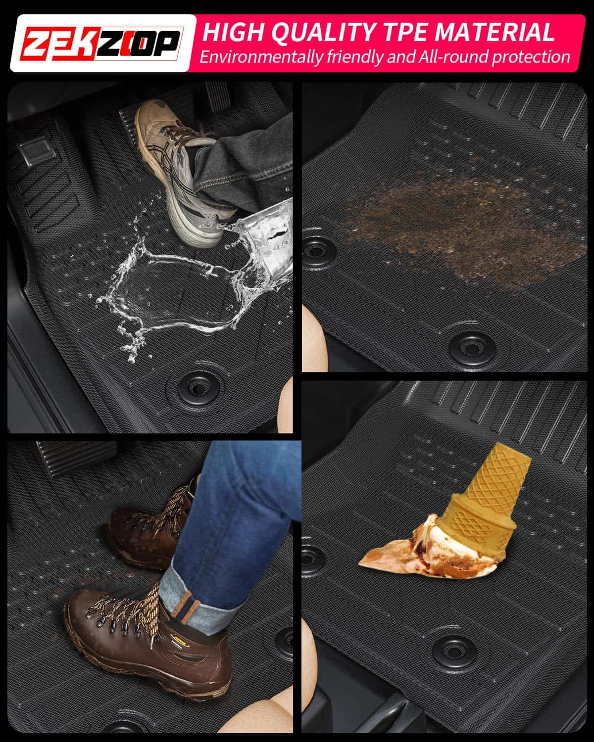 3. Material: Nuestros tapetes de piso y revestimiento de cama están hechos de TPE (Elastómero Termoplástico) de alta calidad, con alta resistencia, resiliencia, respetuosos con el medio ambiente, no tóxicos e inodoros.