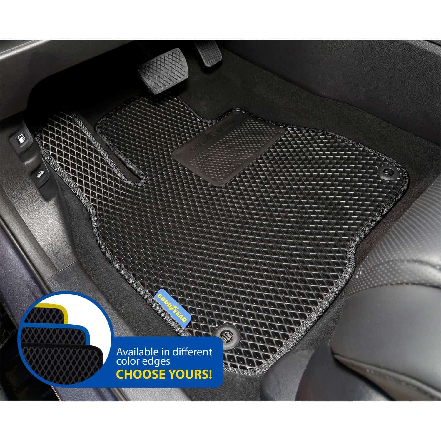 Tapetes para Automóvil de Ajuste Preciso Goodyear (Juego de 4 Piezas en Negro) Todo Clima, Tapetes Impermeables y Resistentes Base Antideslizante de Malla con Sujetadores Seguros Tecnología de Forma Diamante para Máxima Contención de Suciedad y Líquidos Fácil de Limpiar Sacude o Lava con Manguera Incluye Forros Delanteros y Traseros Accesorios de Automóvil Fuertes, confiables y permanentes Bonus: Dos (2) Marcos de Placa de Licencia Goodyear Gratuitos Mejora tu experiencia de conducción y mantén tu auto más limpio con estos tapetes premium para SUVs, camionetas y autos. Haz clic en Agregar al Carrito ahora y actualiza tu vehículo con accesorios para automóvil de alta calidad!