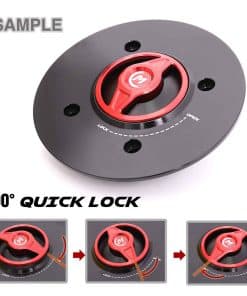 Tapón de Combustible de Liberación Rápida de Aluminio CNC REVO -Diseñado por MC Motoparts- El tapón de combustible de liberación rápida es ideal para corredores y motociclistas de calle de alto rendimiento. Presiona el tapón de bloqueo central y gira para abrir y cerrar suavemente. Los tapones de bloqueo están diseñados en mezcla de colores. Es encantador y destacado. FUNCIÓN: Hay un sello de goma y un anillo en O para evitar fugas de aceite. El artículo contiene un sistema de ventilación. No se proporciona la tubería. MATERIAL: 100% Mecanizado CNC de Aluminio Anodizado Duro Hecho de Aluminio de Alta Calidad Base Negra del Tapón de Combustible Tapón de Bloqueo Central Color: Negro Cantidad: 1 Pieza Si desea otro estilo, por favor, busque en nuestra tienda. Para el color, tenga en cuenta que las reflexiones de la luz pueden afectar ligeramente el tono de color del artículo en la foto en comparación con el producto real. Descargo de responsabilidad de la marca registrada: Los productos de esta lista no están patrocinados, respaldados o afiliados con las marcas a las que pertenecen sus partes. Todas las marcas de productos, logotipos, marcas de vehículos/modelos y nombres son propiedad de sus respectivos propietarios. MC MOTOPARTS es la marca registrada de MC Moto Company Limited.