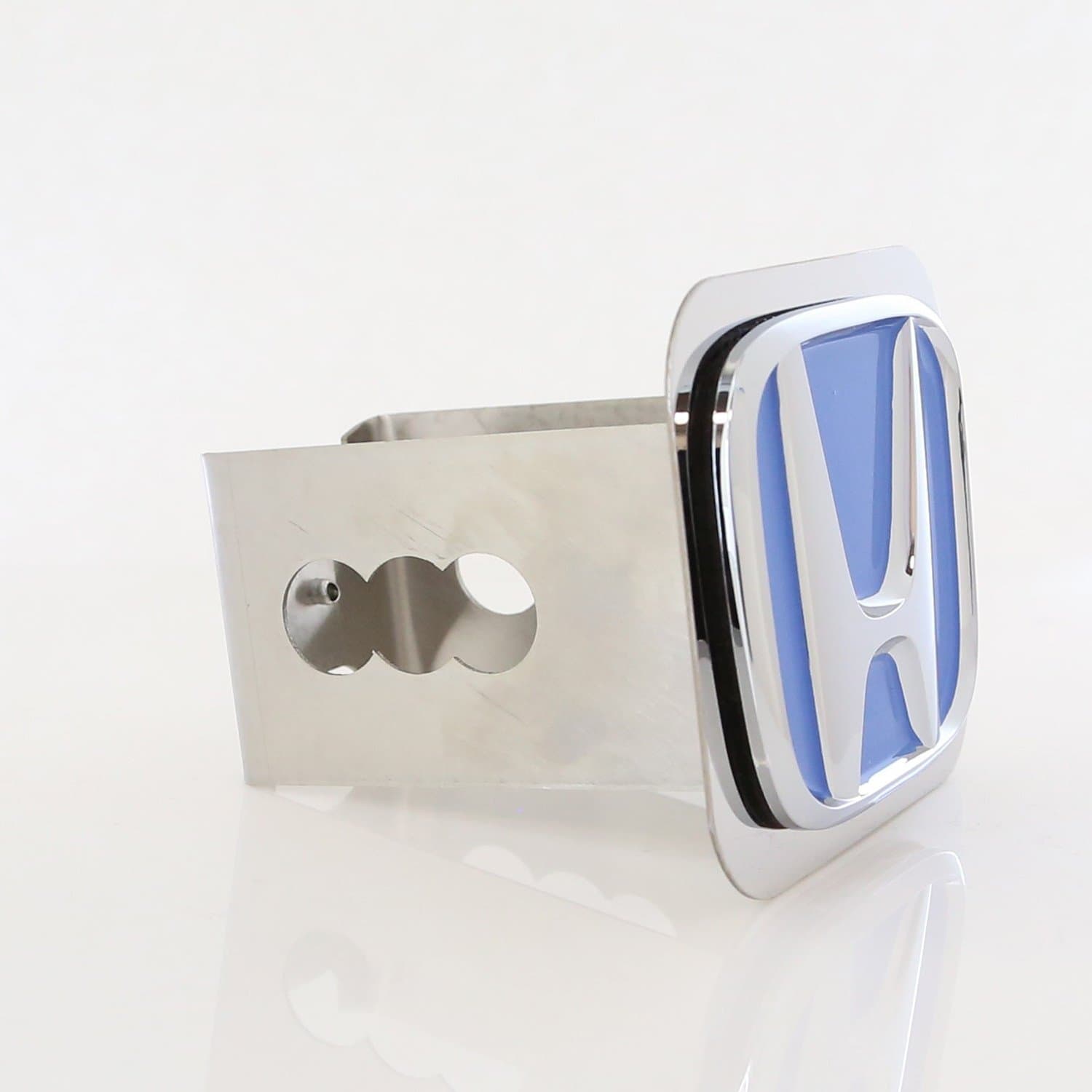 1. Este elegante tapón para enganche de remolque presenta el logotipo del automóvil estilo OEM en 3D en una placa de acero inoxidable pulido.