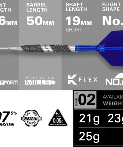 Introduciendo el 975 Ultra Marine, la cúspide de la innovación en dardos de Target Darts. Elaborada a partir de tungsteno al 97.5%, esta línea empuja los límites del diseño y rendimiento. Con tres diseños de barril inspirados en la 7a Edición Elysian, cada uno muestra perfiles de agarre únicos mecanizados por CNC que se transfieren sin problemas a la punta Swiss Storm Nano, garantizando un agarre impecable. El fresado de precisión agrega detalles intrincados, mientras que el fresado multi-eje en el centro introduce un perfil de agarre fresco. La opción de diseño de barril 02 viene en pesos de 21g, 23g y 25g y se beneficia de la garantía de por vida de Target Darts en todos los tipos de barriles. El sistema patentado Swiss Point le permite personalizar su configuración de dardos con facilidad. El sistema de vuelo y eje All-in-One K-Flex ofrece durabilidad y mantiene el ángulo de vuelo perfecto. Esta edición 975 incluye 3 juegos de vuelos No.6 K-Flex. El paquete incluye 3 barriles de tungsteno al 97.5%, 9 puntas Swiss Storm Nano de 26mm, 3 juegos de vuelos No.6 K-Flex, 1 herramienta y llavero Swiss Point, 1 billetera Ultra Marine Takoma exclusiva, 1 insignia 975, todo en una caja de presentación 975 azul vivo.