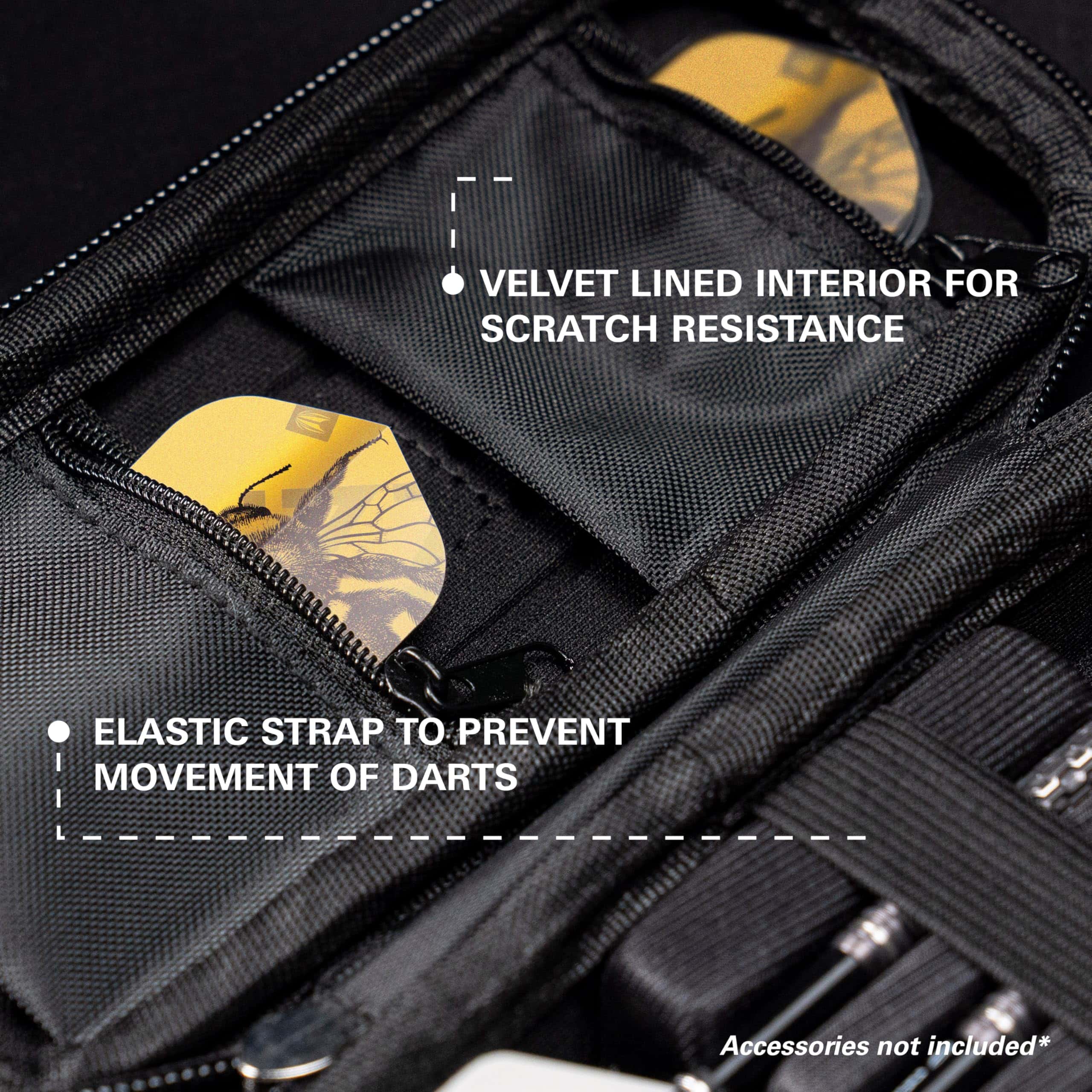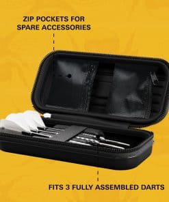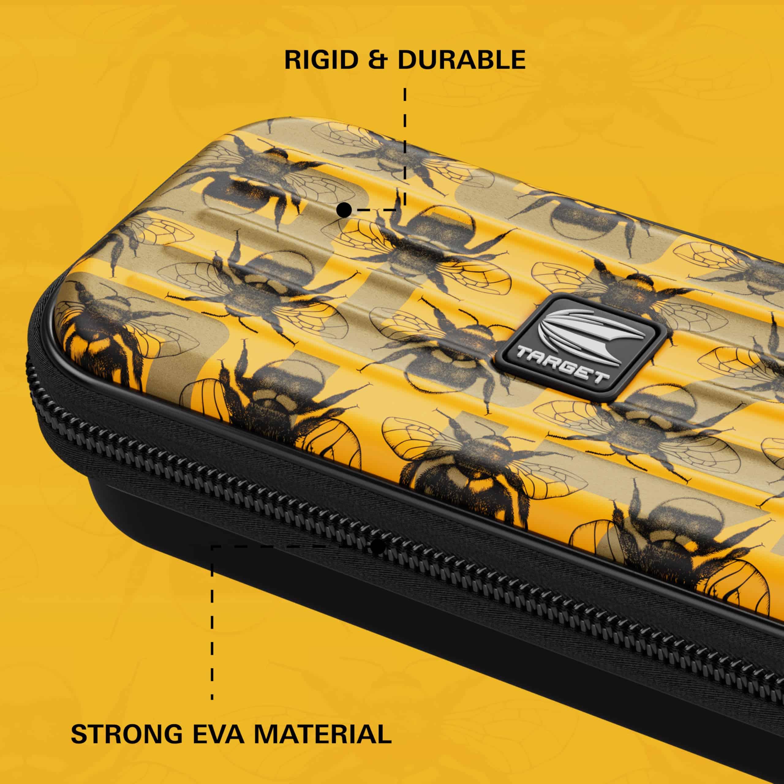 La billetera Buzz Takoma es una billetera de dardos llamativa y resistente, diseñada como parte de la gama Ento, inspirada en la belleza intrincada de las abejas, con un fondo amarillo miel audaz adornado con un vibrante patrón temático de abejas. Construido con un material EVA resistente, diseñado para proteger y almacenar tres dardos completamente ensamblados, manteniéndolos a salvo de impactos y desgaste cuando no están en juego. El cierre con cremallera brinda una protección sólida, con un interior forrado de terciopelo y compartimentos con cremallera para un almacenamiento organizado de accesorios de repuesto. El paquete contiene 1x Billetera Takoma BUZZ.
