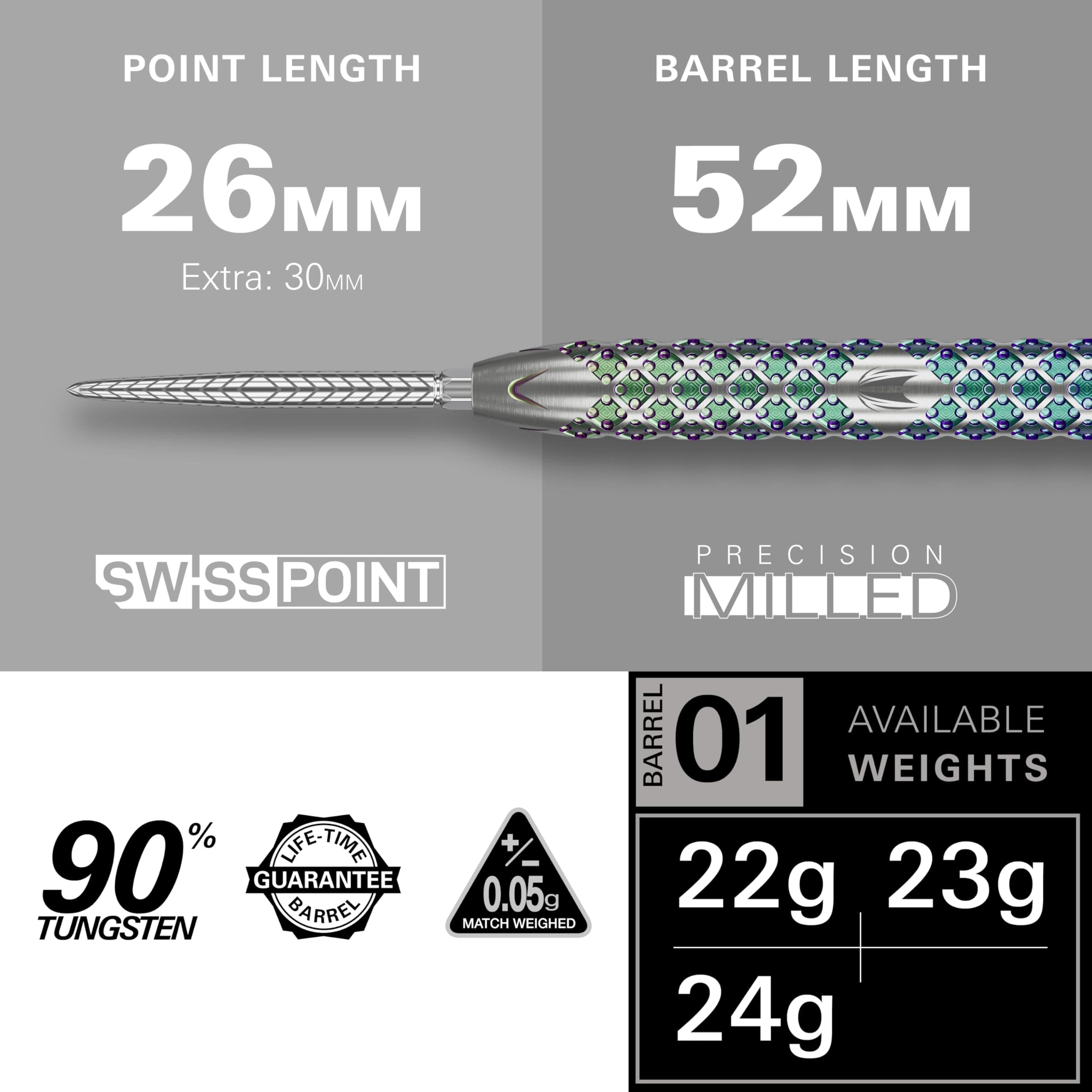 TARGET Darts Rove Steel Tip Swiss Point -Plateado y Verde