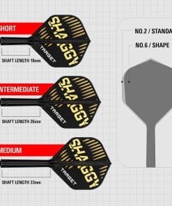 TARGET Darts Scott Williams K Flex Flights and Shaft System, No.2 | Pack de 3 Kflex Todo en Uno Flights, Accesorios de Dardos Edición Jugador | Vástago de Dardos K-Flex – Corto (19mm). Como semifinalista del Campeonato Mundial de 2024, Williams ha demostrado ser una fuerza en crecimiento. Con su inconfundible marca Shaggy con marcas de garras amarillas eléctricas sobre una base negra profunda, este diseño captura la fuerza cruda y el borde intrépido que define su juego. Construido con moldeo por inyección avanzado para una máxima durabilidad, flexibilidad y resistencia al impacto, el sistema integrado de vuelo y vástago Kflex elimina las caídas de vuelo y proporciona un juego suave e ininterrumpido. El ángulo fijo de vuelo de 90 grados garantiza una estabilidad perfecta en vuelo y agrupaciones ajustadas, mientras que la rosca universal 2BA ofrece una compatibilidad perfecta con todos los barriles estándar de dardos. La sección del vástago especialmente diseñada se flexiona al impacto para reducir los rebotes y desviaciones, manteniendo tus tiros precisos y tu impulso en marcha. El paquete contiene 3 x Scott Williams No.2 K-Flex vuelos y vástagos integrados de Target Darts. Disponibles en 3 opciones de longitud: Corto (19mm), Intermedio (26mm) y Medio (33mm).