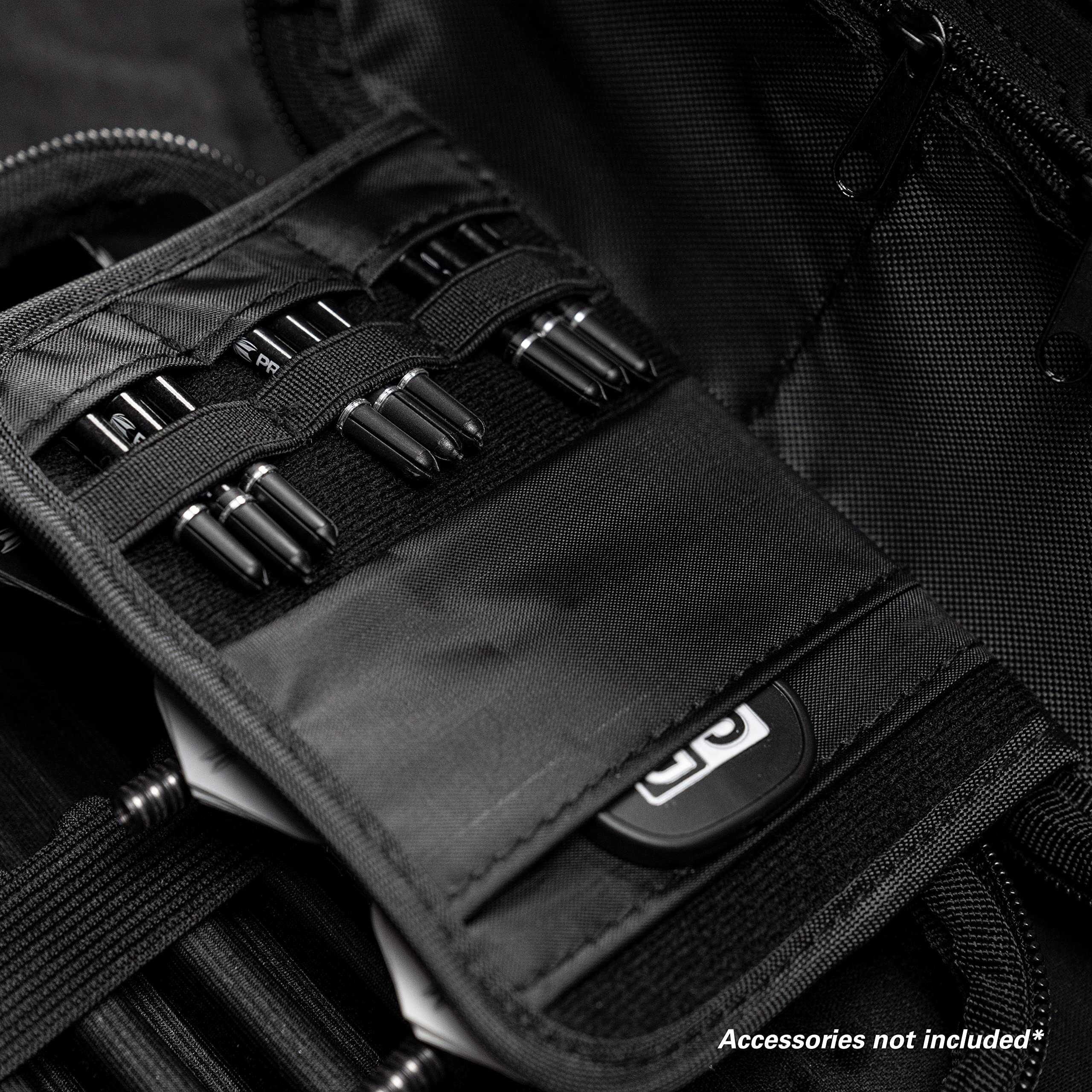 3. ORGANIZACIÓN EFICIENTE DE LOS ACCESORIOS DE DARDOS: Equipado con dos bolsillos con cremallera, el estuche mantiene organizados y accesibles durante tus juegos los accesorios de dardos de repuesto como los vuelos, los ejes, las puntas, o una herramienta Swiss Point.