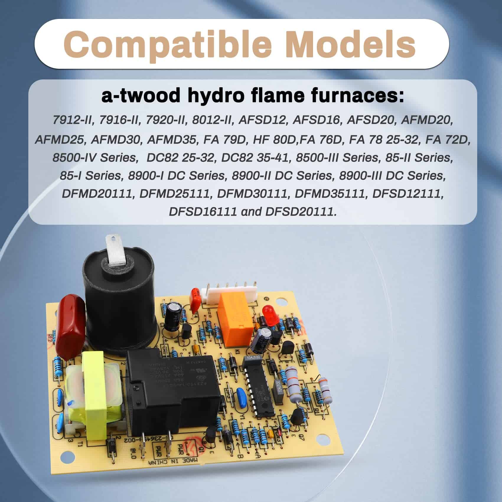 Tarjeta de Circuito Sienson 31501 Compatible con Atwood, 33488 33727 Kit de Tarjeta de Control de Encendido para RV Reemplazo para Dometic Hydro Flame Corp 85-IV/III/II/I 7900-II 8012-II 7916-II 7920-II. Compatible Models:31501 circuit board Compatible Atwood Hydro Flame Furnaces: 7912-II, 7916-II, 7920-II, 8012-II, FA 79D, HF 80D, DC82 25-32, DC82 35-41, FA 76D, FA 78 25-32, FA 72D, 85-I Series,85-II Series,8500-III Series,8500-IV Series , 8900-I DC Series, 8900-II DC Series, 8900-III DC Series, AFSD12, AFSD16, AFSD20, AFMD20, AFMD25, AFMD30, AFMD35. Complete Functionality:31501 control board RV Hydro Flame Furnace Ignition Board is fully functional and enables 31501 Ignition control Board to perform all functions required to turn the Furnace on and keep it running. Tip: Please make sure the model matches before purchase 31501 circuit board. Specification Parameters:31501 circuit board e ignition control board is powered by 12V DC and sends a signal to open the gas valve and a high output voltage to generate an ignition spark to ignite the burner. OEM Standard:31501 circuit board RV Ignition Control Board Kit adopts SMT technology to ensure more stable and reliable product quality, strict production standards, strict inspection before leaving The factory, through multiple processes of quality inspection before leaving The atwood furnace parts factory, to ensure The product quality. 31501 control board OEM quality standards are more reassuring to use. Good after-sales service:We have good professional pre-sales service and good after-sales service, 24 hours online service, whether you encounter any problems before or after purchase 31501 control board can directly contact us, we will give you a satisfactory reply in the first time.