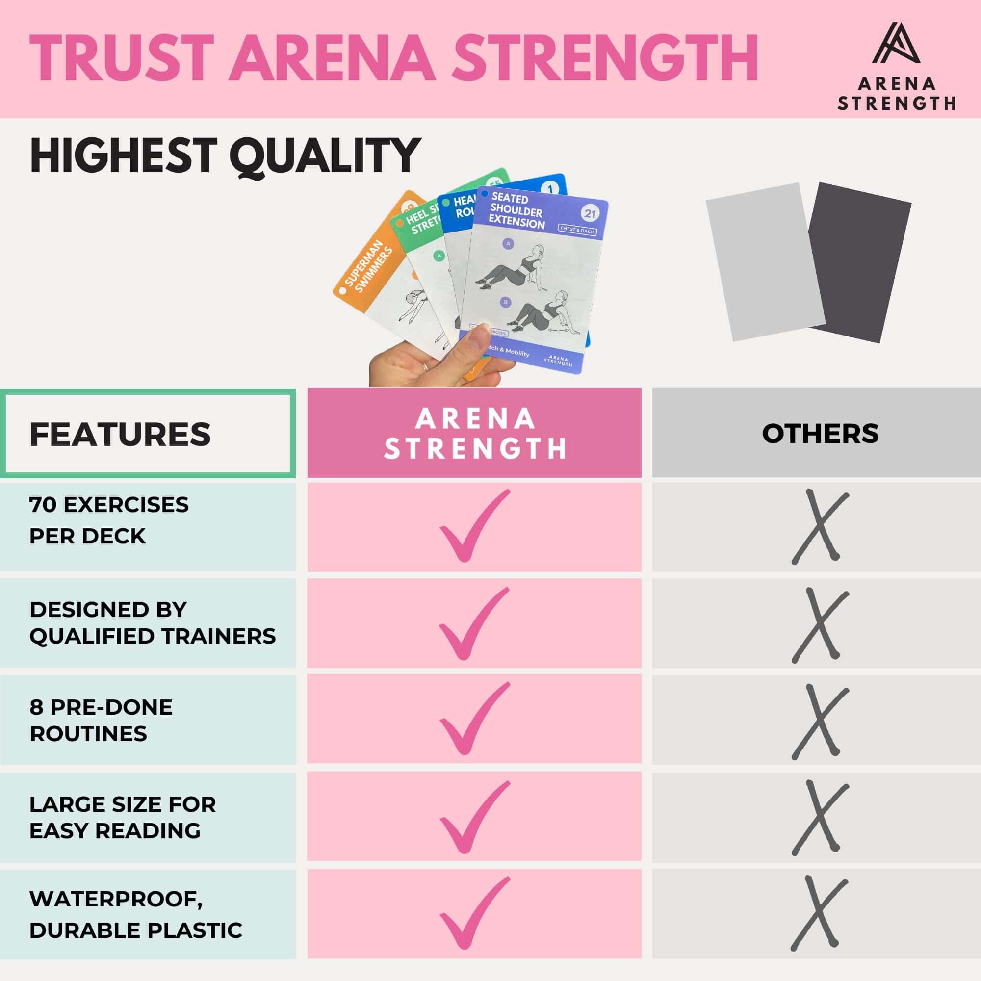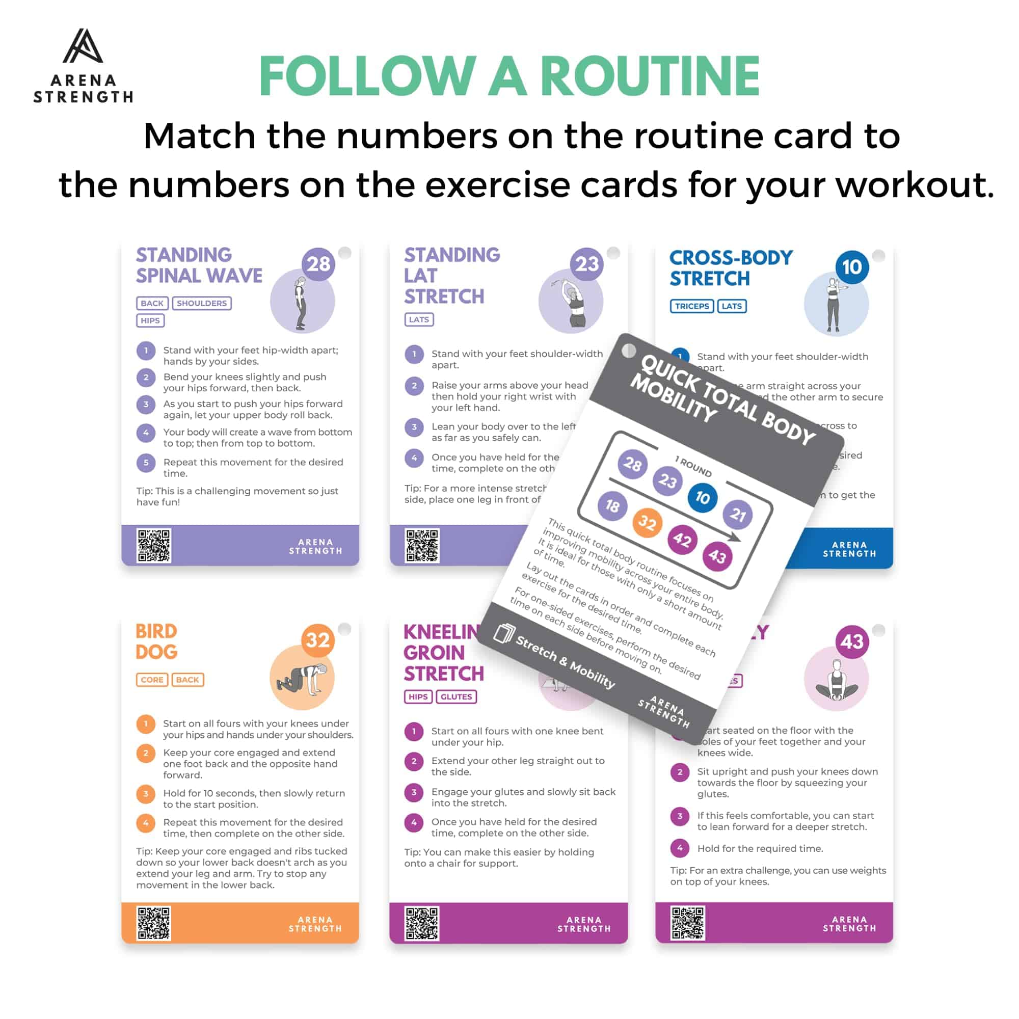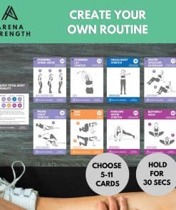 No pierdas más tiempo buscando rutinas en línea, con las tarjetas de ejercicios Arena Strength Stretch, Movilidad y Flexibilidad, podrás crear entrenamientos divertidos y motivadores en cuestión de segundos. ¡Añádelas a tu rutina de ejercicios hoy mismo!