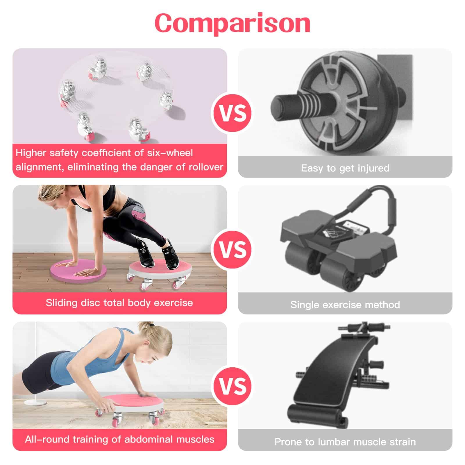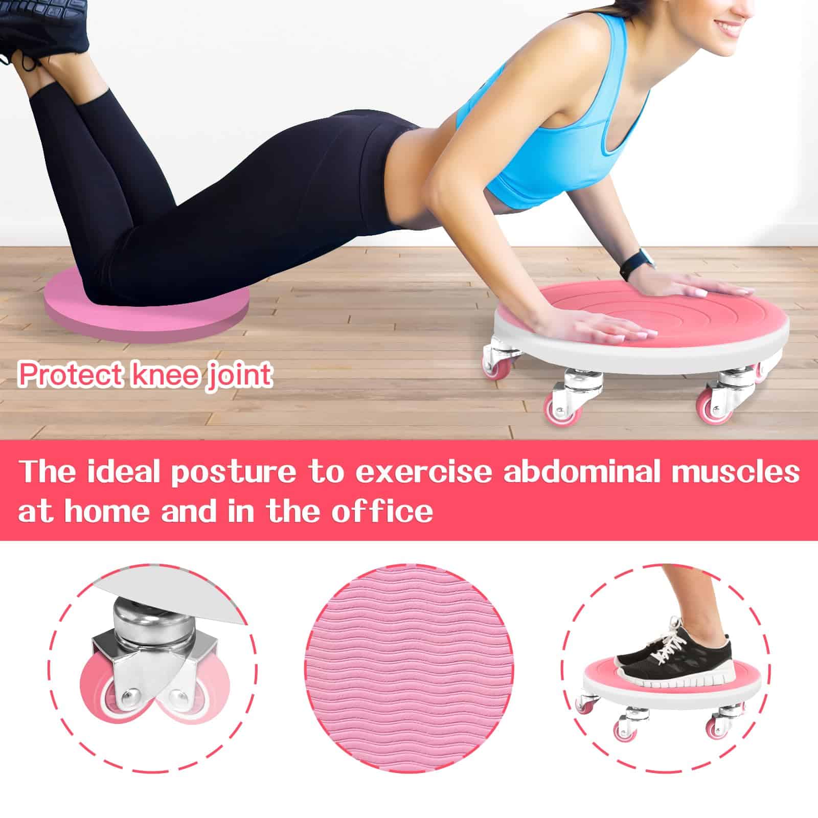 3. Más Seguro y Cómodo: En comparación con el equipo de entrenamiento de núcleo ordinario, la tabla de entrenamiento abdominal de seis ruedas no tensará los músculos ni hará que los dedos se pongan ásperos. La tabla de entrenamiento abdominal tiene una superficie de goma suave TPE texturizada y rodilleras suaves, lo que te hace sentir más cómodo.