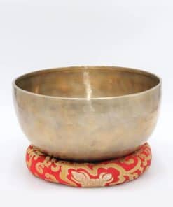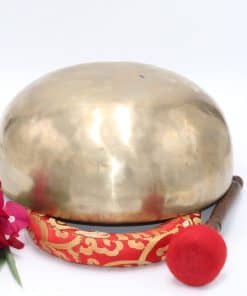 El tazón cantador de meditación es una campana vibrante que produce un tono rico y profundo y se utiliza para terapia del sonido y sanación espiritual. Los tazones cantadores afectan y armonizan profundamente el cuerpo y el alma. Tradicionalmente hechos de siete metales, correspondientes a los siete planetas visibles, el tazón cantador promueve un masaje sonoro profundo y mejora el estado de relajación. Frotar un tazón cantador lo hace cantar y de ahí proviene su nombre. La ciencia detrás del proceso es que un tono se realza y todos los demás tonos desaparecen, creando un sonido puro y penetrante. El palo de madera sin barnizar de diámetro más pequeño que viene junto con su tazón cantador, al frotar alrededor del borde del tazón creará el sonido zumbante. Presione firmemente el palo de madera contra el borde del tazón para evitar un sonido de traqueteo. Piense en ello como si estuviera cabalgando una ola mientras lentamente arrastra y presiona el palo alrededor del tazón en círculos. Frotar gradualmente sacará el canto. A veces un ligero toque para iniciar el sonido, luego proceder a frotar hará que funcione más fácilmente.
