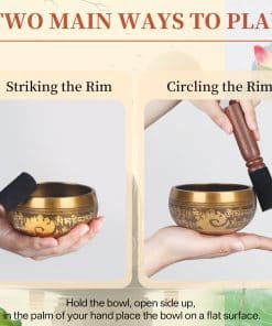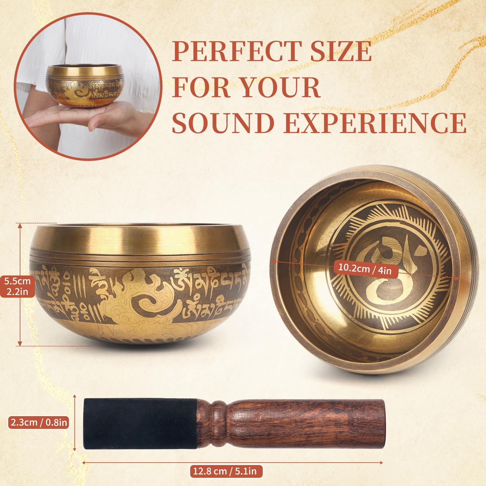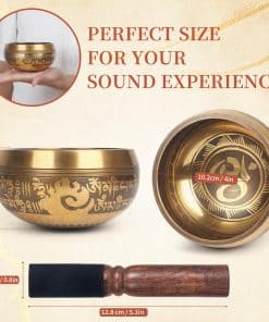 Las ondas sonoras emitidas por los tazones cantores tienen un impacto significativo en nuestra mente, cuerpo y emociones. Cuando se utiliza el sonido con una intención positiva, puede tener un efecto profundo en nuestro bienestar, ayudándonos a sintonizarnos con algo más profundo dentro de nosotros mismos. La terapia de sonido tiene la capacidad de energizar, elevar y traer estados de paz y armonía a nuestra vida diaria. Los tonos largos, perfectamente equilibrados y profundamente reconfortantes de este tazón de sonido invitan a descubrir la paz y armonía interior. Cada tazón está meticulosamente afinado para producir un sonido rico y resonante que mejora tus sesiones de meditación y terapia de sonido. Hecho al 100% por las amorosas manos de artesanos en Nepal, cada tazón cantor es único, con ligeras variaciones en forma, tamaño y sonido, convirtiéndolos en verdaderas obras de arte. Construido para durar, este tazón cantor está hecho de latón de alta calidad que garantiza años de uso y disfrute. Las intrincadas grabaciones y el acabado pulido añaden un toque de elegancia, convirtiendo el tazón en una hermosa pieza decorativa cuando no está en uso. Diseñado para ser utilizado por practicantes de todos los niveles de habilidad, la versatilidad de este tazón te permite tocar su tono fundamental con el extremo de gamuza del mazo o explorar su sobretono con el extremo de madera. Su resonancia rica y calmante lo convierte en una herramienta indispensable para prácticas de meditación y sanación de sonido. En AKLOT Music, creemos que la música es una herramienta poderosa que todos pueden utilizar para traer positividad, creatividad y curación a su vida cotidiana. Nuestro servicio dedicado está aquí para asegurarse de que tengas el apoyo que necesitas en tu viaje musical. Empaquetado en una hermosa caja de regalo, este tazón cantor de 4″ es un excelente regalo para seres queridos que aprecian la atención plena y la espiritualidad. Ideal para yoga, meditación, sanación de sonido y alivio del estrés, este tazón cantor se puede utilizar en diferentes entornos para promover la paz y la tranquilidad. Arraigado en antiguas tradiciones, este tazón cantor lleva un profundo significado cultural y espiritual, mejorando tu práctica y conexión. Las vibraciones producidas por los tazones de sonido pueden ayudar a equilibrar y alinear los centros de energía del cuerpo (chakras).