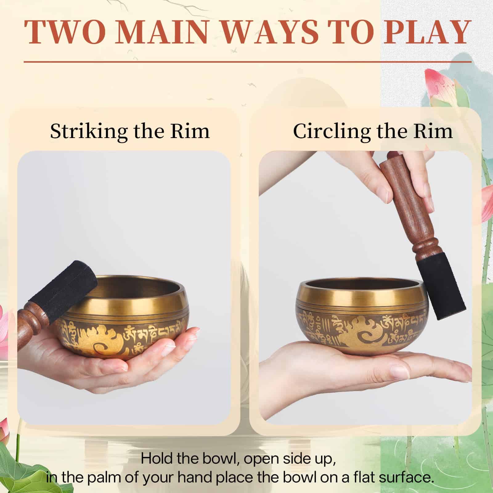 Tazón Cantor de Meditación Hecho a Mano AKLOT: Juego de