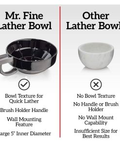 1. UN BUEN AFEITADO REQUIERE UNA BUENA ESPUMA. El tazón de espuma diseñado cuidadosamente por el Sr. Fine presenta una textura estriada para airear adecuadamente su jabón o crema, permitiéndole crear una espuma espesa y cremosa cada vez. Apreciará el contraste de color entre nuestra superficie oscura intencional del tazón y su espuma blanca pura.