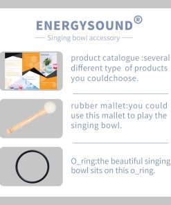Los tazones de canto de cuarzo ENERGYSOUND están hechos de cuarzo de alta pureza, con una pureza superior al 99.99%. Producidos a más de 1800 grados, estos tazones se prueban para determinar las notas musicales. Los tazones de canto son instrumentos musicales que pueden ser utilizados para tratamientos y ayudan a la meditación. Sus tonos resuenan a través del cuerpo, calmando, alineando y sanando los centros energéticos. La investigación médica va validando el poderoso uso de estos tazones en el equilibrio y sanación del cuerpo, mente y espíritu. Incluyen notas asociadas a los chakras del cuerpo humano y emiten tonos resonantes al ser golpeados suavemente con el mazo acompañante.