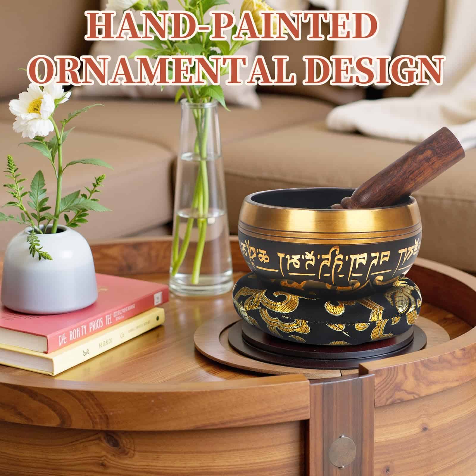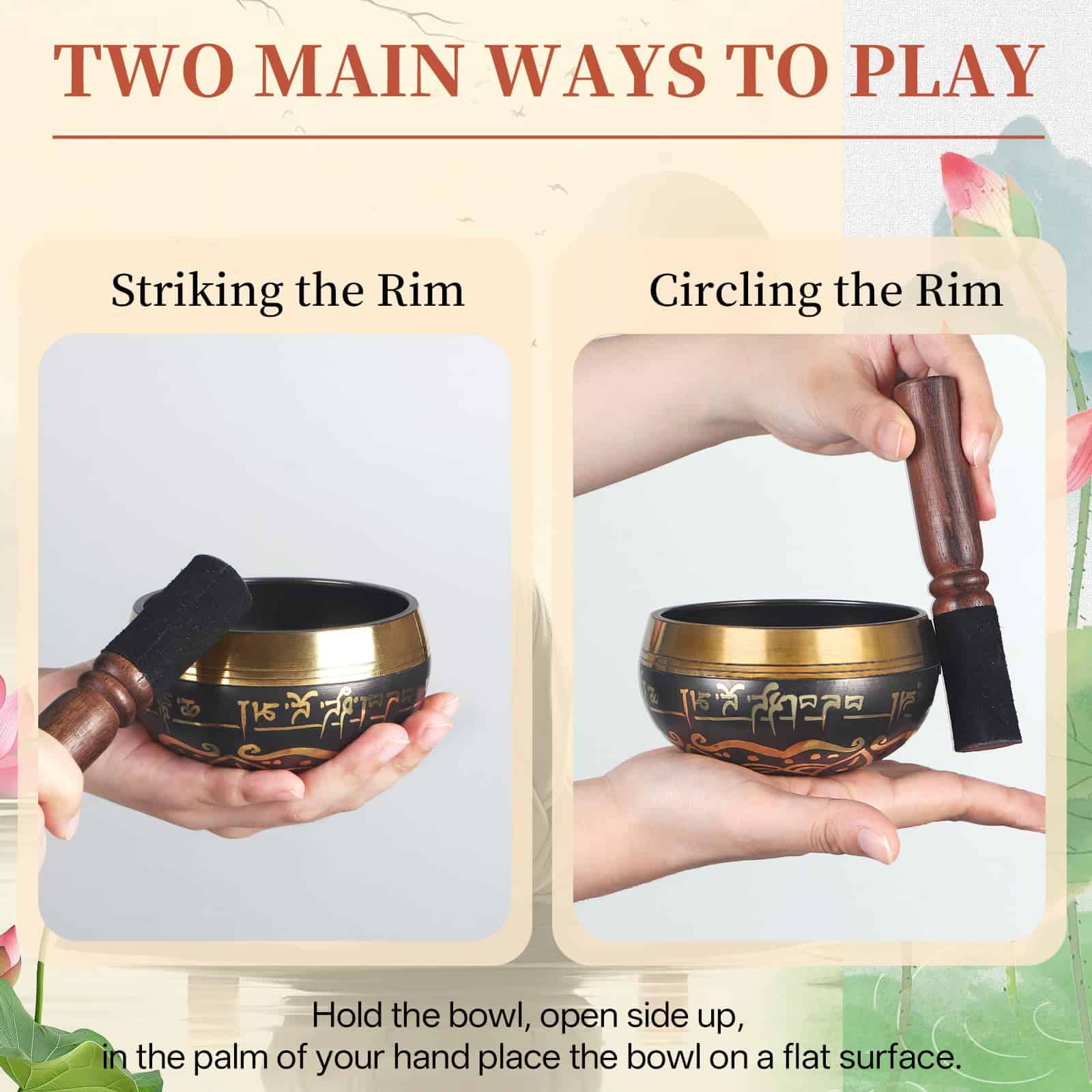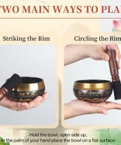Diseñado para adaptarse a practicantes de todos los niveles de habilidad, el tazón de canto te permite tocar su tono fundamental con el extremo acolchado de gamuza del mazo o explorar su sobretono con el extremo de madera. Esta versatilidad hace que el tazón de canto sea una herramienta indispensable para tus prácticas de meditación y sanación del sonido.
