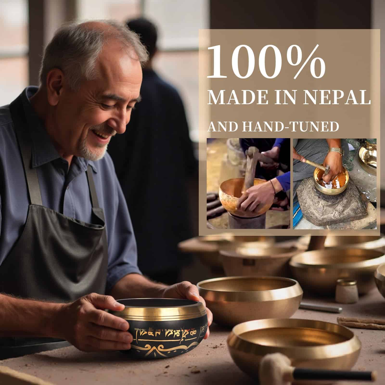 Disfruta de las profundas raíces culturales y el significado espiritual del tazón de canto de meditación hecho a mano AKLOT, que puede ayudarte a equilibrar y alinear los centros de energía de tu cuerpo (chakras). Úsalo en tus sesiones de yoga, meditación, sanación del sonido y alivio del estrés para promover la paz y la tranquilidad en tu vida diaria.