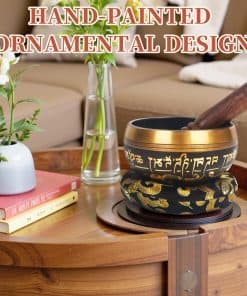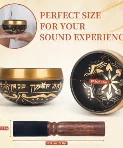 Las ondas sonoras emitidas por el tazón de canto tienen un profundo efecto en la mente, el cuerpo y las emociones, ayudándote a sintonizar algo más profundo dentro de ti. La terapia del sonido puede energizarte, elevar tu estado de ánimo y traer paz y armonía a tu vida diaria. Además, el tazón está afinado a mano para producir tonos ricos y resonantes que mejorarán tu práctica de meditación y sanación del sonido.