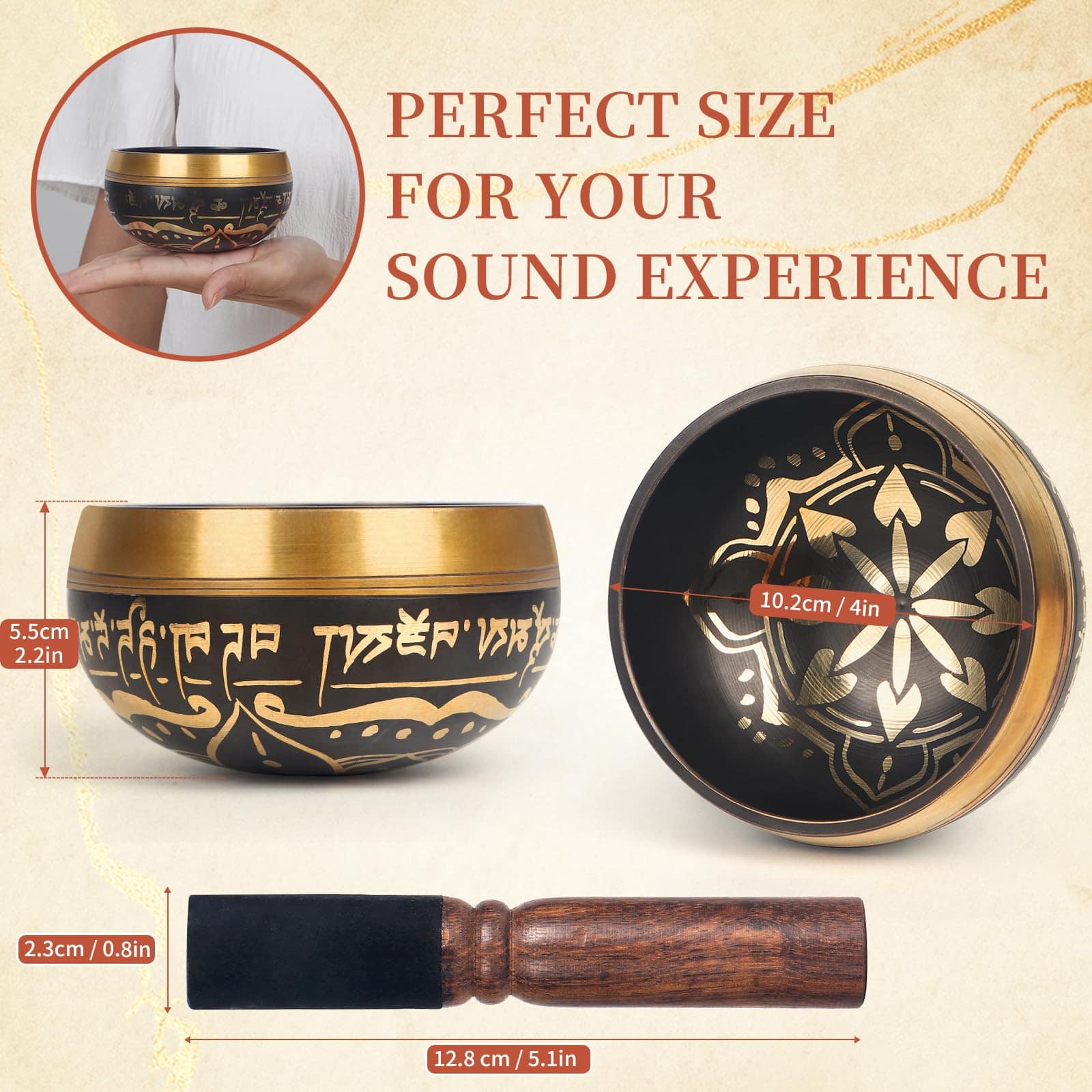 El tazón de canto de meditación hecho a mano AKLOT es el complemento perfecto para tus sesiones de meditación, sanación del sonido, yoga, oración y relajación. Hecho con amor por artesanos en Nepal, cada tazón es único en forma, tamaño y sonido, lo que lo convierte en una verdadera obra de arte. Este tazón de canto de 4 pulgadas está hecho de latón de alta calidad y su acabado pulido y grabados intrincados lo convierten en una pieza decorativa hermosa cuando no está en uso.