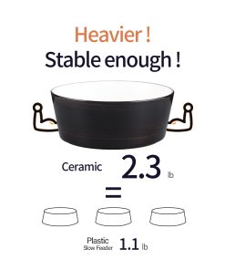 Material de cerámica, mantente alejado de la enfermedad de la barbilla – El veterinario recomienda usar un tazón de cerámica para mantener a tu perro alejado de la enfermedad de la barbilla. Según investigaciones, los tazones de plástico son propensos a criar bacterias y causar mandíbulas negras. Si amas a tu perro, nuestro tazón de comida lenta de cerámica será tu mejor elección. Estos tazones de comida para perros están hechos de cerámica. Aptos para microondas, puedes calentar la comida de tu perro en cualquier momento.
