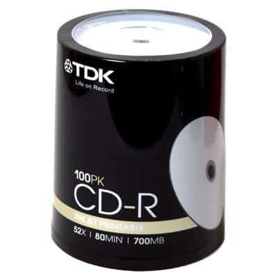 TDK CD-R grabable 52X 80min 700mb imprimible – Paquete de 100
