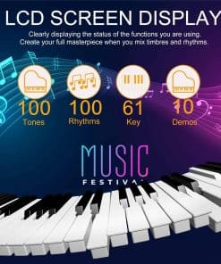 1 x Micrófono, 1 x Cable de Alimentación USB, 1 x Piano de 61 Teclas