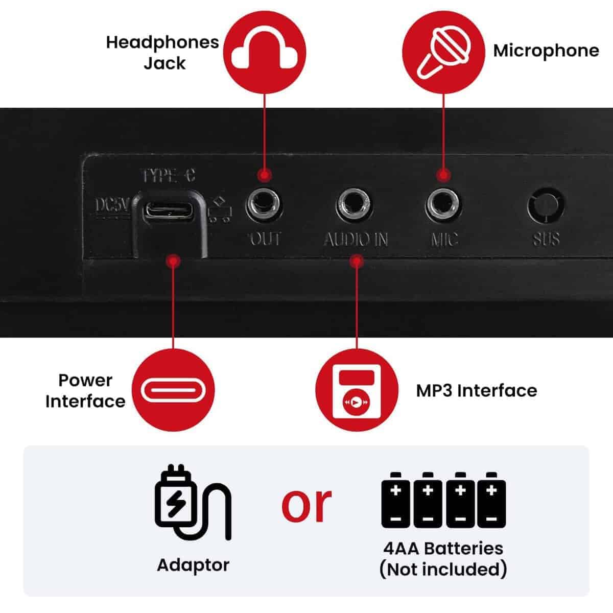 4. Fácil de transportar – El teclado de piano se puede alimentar con un adaptador de corriente o 4 pilas AA de 1,5 V (no incluidas). El piano portátil es conveniente para practicar en casa o actuaciones al aire libre, permitiéndote disfrutar de la música en cualquier momento y lugar. (Consejo: Todos los accesorios se almacenan en la espuma en los extremos del cartón.).