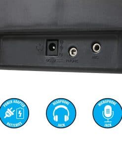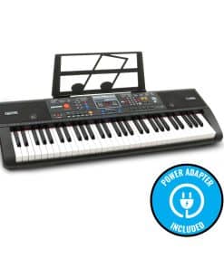 4. COMPONENTES INCLUIDOS: Cada teclado incluye un adaptador de corriente, soporte para partituras y cable auxiliar. Este teclado musical también viene automáticamente con una garantía completa de un año que protege contra cualquier daño o defecto.