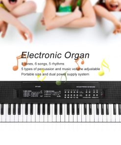 Especificación: Tipo de artículo: Órgano electrónico Material: Plástico Color: Negro y blanco Suministro de energía: 3 pilas AA (no incluidas) o cable USB Se puede compartir adaptador de corriente de teléfono móvil Lista de paquetes: 1 x Órgano electrónico 1 x Micrófono 1 x Cable de alimentación USB