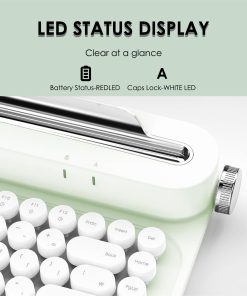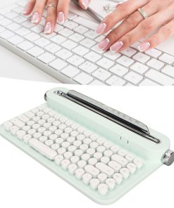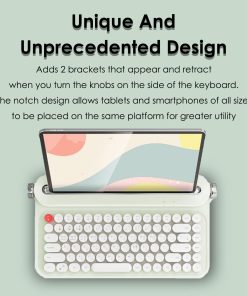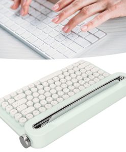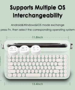 1. Diseño estético Este teclado combina estilo retro con diseño moderno con un diseño compacto, teclas adorables y tecnología inalámbrica de borde a borde para más diversión al escribir. Adopta el método de entrada clásico, reproduce la sensación de golpeteo de la antigua máquina de escribir. 2. 5.0 El teclado vintage inalámbrico cuenta con la última tecnología 5.0, proporcionando conectividad sin cables y sin enredos con un rango de 33 pies (10 metros) sin latencia. Empareja hasta 3 dispositivos y cambia entre ellos usando FN más 1, 2, 3. 3. Compacto Con 86 teclas, el teclado retro vintage minimiza el tamaño y ahorra espacio en el escritorio mientras garantiza funcionalidad completa y es más fácil de transportar que un teclado de tamaño completo. 12 teclas de función fáciles de usar FN más proporcionan accesos directos versátiles. 4. Diseño de ranura Este teclado está diseñado con una ranura para permitir que un teléfono inteligente o una tableta se coloquen de forma segura con una longitud máxima de aproximadamente 30.2 cm para todas las tabletas. La parte inferior está equipada con pies de soporte y se puede ajustar en altura con perillas en ambos lados. 5. Amplia compatibilidad El teclado retro inalámbrico es compatible con múltiples sistemas y dispositivos, smartphones, tabletas, laptops se pueden conectar al mismo tiempo, compatible con Windows, Android o iOS. Viene con una tecla de escape de repuesto de color rojo.Especificaciones:Tipo de producto: Teclado Vintage BT Material: ABS Modelo: B305 Tipo de batería: Requiere 2 pilas AAA (no incluidas) Versión de BT: BT5.0 Distancia efectiva: Aprox. 10 m / 33 pies Longitud de la ranura: Aprox. 30.2 cm / 11.9 pulgadas, todas las tabletas se pueden colocar Dispositivos conectados: Smartphones, tabletas, laptops se pueden conectar simultáneamente Sistema compatible: Compatible con Windows, Android o iOS Cómo utilizar: Instala 2 pilas AAA, conecta a BT, consulta el manual detallado. Lista de paquetes: 1 x Teclado Vintage BT 1 x Tecla de escape de repuesto 1 x Manual de instrucciones o 1 x Teclado Vintage BT 1 x Tecla de escape de repuesto 1 x