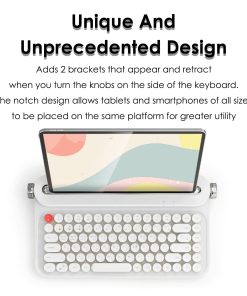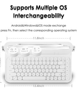 1. Diseño estético Este teclado combina el estilo retro con el diseño moderno con una distribución compacta, teclas encantadoras y tecnología inalámbrica de borde a borde para más diversión al escribir. Adopta el método de entrada clásico, reproduce la sensación de golpear una vieja máquina de escribir. 2. 5.0 El teclado inalámbrico vintage presenta la última tecnología 5.0, proporcionando conectividad sin cables y sin desorden con un alcance de operación de 33 pies (10 metros) y sin latencia. Empareja hasta 3 dispositivos y alterna entre ellos usando FN más 1, 2, 3. 3. Compacto Con 86 teclas, el teclado retro vintage minimiza el tamaño y ahorra espacio en el escritorio mientras garantiza una funcionalidad completa y es más fácil de transportar que un teclado de tamaño completo. 12 teclas de función fáciles de usar FN plus proporcionan accesos directos versátiles. 4. Diseño de reborde Este teclado está diseñado con un reborde para permitir que un teléfono inteligente o tableta se coloque de forma segura con una longitud máxima de aproximadamente 30.2 cm para todas las tabletas. La parte inferior está equipada con pies de soporte y se puede ajustar en altura con perillas en ambos lados. 5. Amplia compatibilidad El teclado de máquina de escribir inalámbrico es compatible con múltiples sistemas y dispositivos, se pueden conectar teléfonos inteligentes, tabletas, computadoras portátiles al mismo tiempo, compatible con Windows, Android o iOS. Viene con una tecla roja Esc de repuesto. Especificaciones: Tipo de artículo: Teclado vintage BT Material: ABS Modelo: B305 Tipo de batería: Requiere 2 pilas AAA (no incluidas) Versión BT: BT5.0 Distancia efectiva: Aprox. 10 m / 33 pies Longitud de reborde: Aprox. 30.2 cm / 11.9 in, todas las tabletas se pueden colocar Dispositivos conectados: Se pueden conectar teléfonos inteligentes, tabletas, computadoras portátiles al mismo tiempo Sistema compatible: Compatible con Windows, Android o iOS Cómo usar: Instalar 2 pilas AAA, conectarse a BT, consultar el manual detallado. Lista del paquete: 1 x Teclado vintage BT 1 x Tecla de repuesto Esc 1 x Manual de instrucciones o 1 x Teclado vintage BT 1 x Tecla de repuesto Esc 1 x