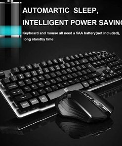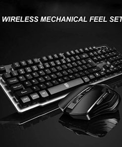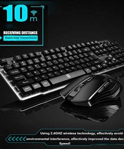 1. Alta Calidad: Nuestro producto es 100% nuevo y de buena calidad. Este teclado utiliza un panel de dibujo de metal de 0.6MM, refuerzo y engrosamiento; El borde con decoración pulida, aspecto elegante y moderno. Tecnología Inalámbrica 2.4G: Utilizando tecnología inalámbrica 2.4GHZ, evita eficazmente otras interferencias ambientales, mejora la velocidad de decodificación de datos. Y la distancia de recepción es de hasta 10m. 3. Set de Teclado y Ratón para Juegos con Sensación Mecánica: El teclado con teclas de suspensión, distribución alta-baja, que brinda una sensación cómoda de párrafo; El ratón utiliza el chip de juego 3212,6 botones y DPI ajustable(el más alto es 2400). Adecuado para muchos juegos como LOL, CF, WOW, DOTA. 4. 12 Teclas de Función Multimedia: Las teclas de función multimedia garantizan que puedas usarlo para juegos, trabajar, entretenimiento. (Nota: Cuando uses las teclas de función multimedia, debes ingresar «FN «, como FN+F6SIGUIENTE CANCIÓN). 5. Plug and Play: El teclado y el ratón comparten un nano receptor, no hay interferencias, plug and play, muy fácil y conveniente. (NOTA: Este es un teclado con sensación mecánica, NO un teclado mecánico, por favor, lee la información detallada antes de comprarlo).