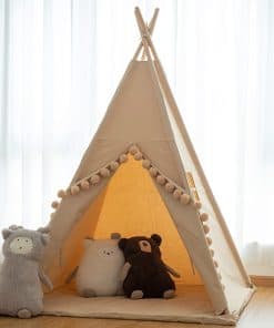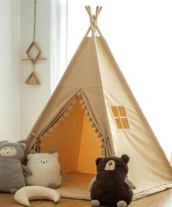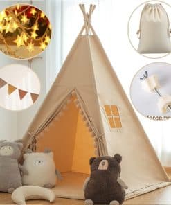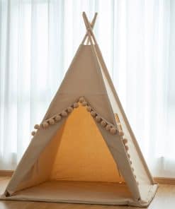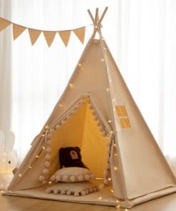 Teepee para Niños con Luces y Grandes Borlas en color Caqui