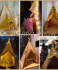 Aquí el precio no incluye alfombras ni accesorios. Solo el precio de la tienda Tepee. ¿Por qué necesitas una tienda para niños? A veces todos necesitan un pequeño lugar para la privacidad, incluidos tus hijos en crecimiento. Por eso esta adorable tienda Teepee para niños es una opción perfecta para que tus hijos exploren su mente siempre en expansión mientras están en la frontera de la sala de juegos. Cuando tus hijos son creativos en interiores, la tienda Teepee para niños es la excelente elección para que los más pequeños creen un entorno de escondite donde pueden ser ellos mismos. Características: 1. Telas de lona de algodón 100%, postes de madera limpios y libres de productos químicos, sin olor irritante. 2. Fácil de armar y doblar para guardar, totalmente portátil y conveniente. 3. Suficientemente grande para que quepan dos lindos niños. 4. Su propio pequeño «espacio» donde pueden jugar, leer, dormir la siesta o simplemente usar su imaginación. 5. Colores brillantes y simples: Los bebés pueden decorar sus tiendas por sí mismos. 6. Decoraciones de lujo para la habitación de los niños o la sala de estar. 7. Nuestra pequeña tienda Teepee para niños es un buen regalo para las vacaciones, los cumpleaños de los niños y las fiestas, que proporciona un tiempo de juego divertido para los niños pequeños. Tiendas para niños de 3 a 7 años, niños y niñas tienen su propio pequeño mundo.