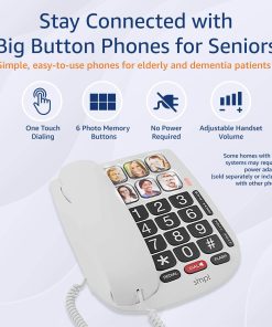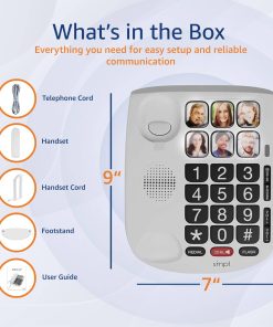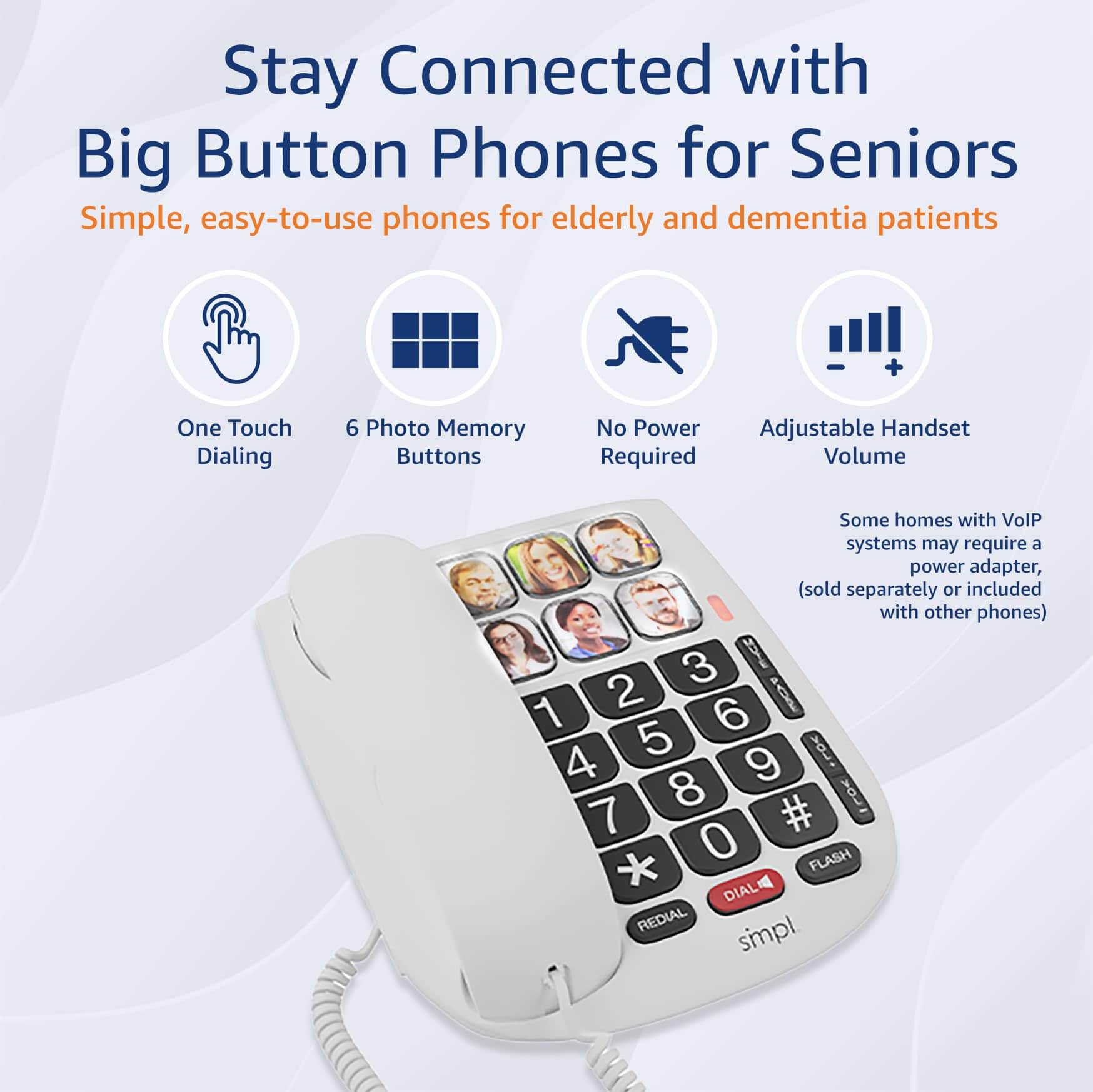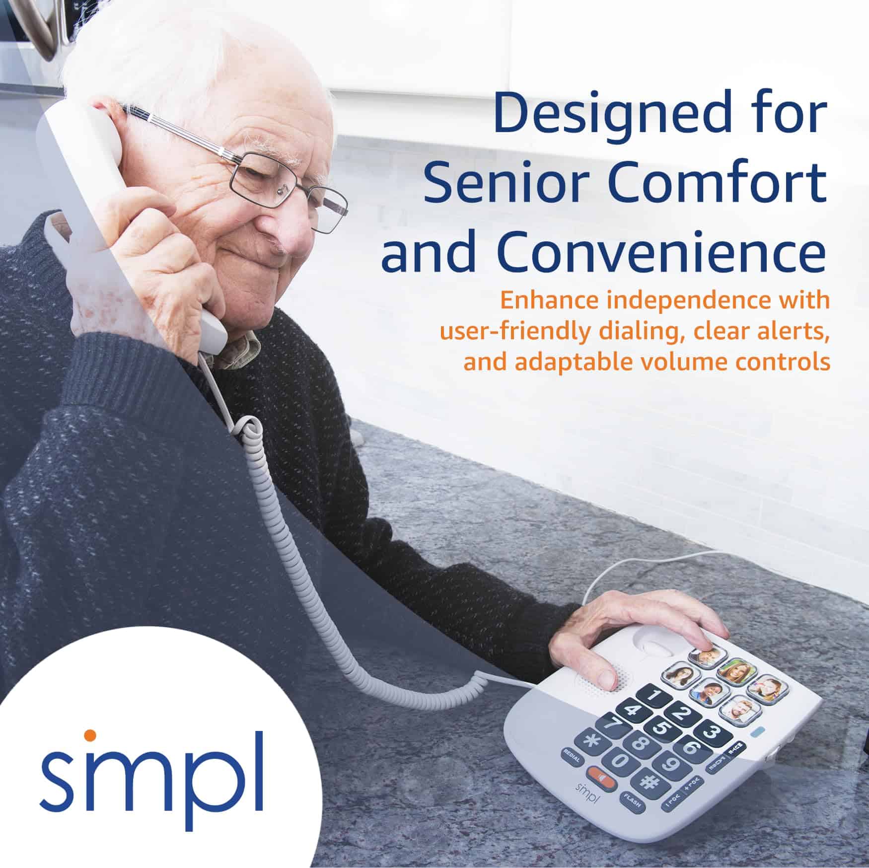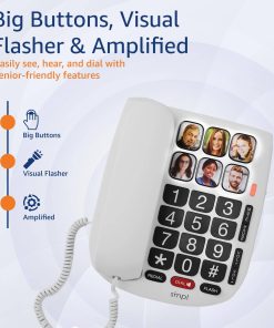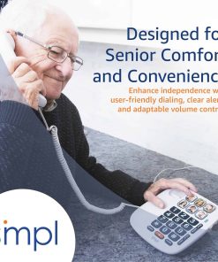 Este teléfono con cable SMPL es perfecto para personas mayores y con problemas de audición. Cuenta con memoria de fotos para facilitar la marcación, botones grandes y alertas intermitentes. Ideal para aquellos que buscan comodidad y facilidad de uso en un teléfono de línea fija.