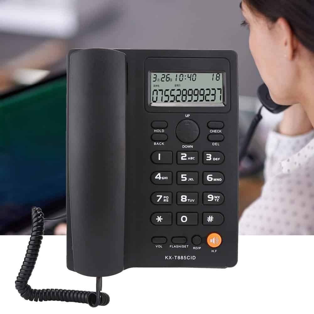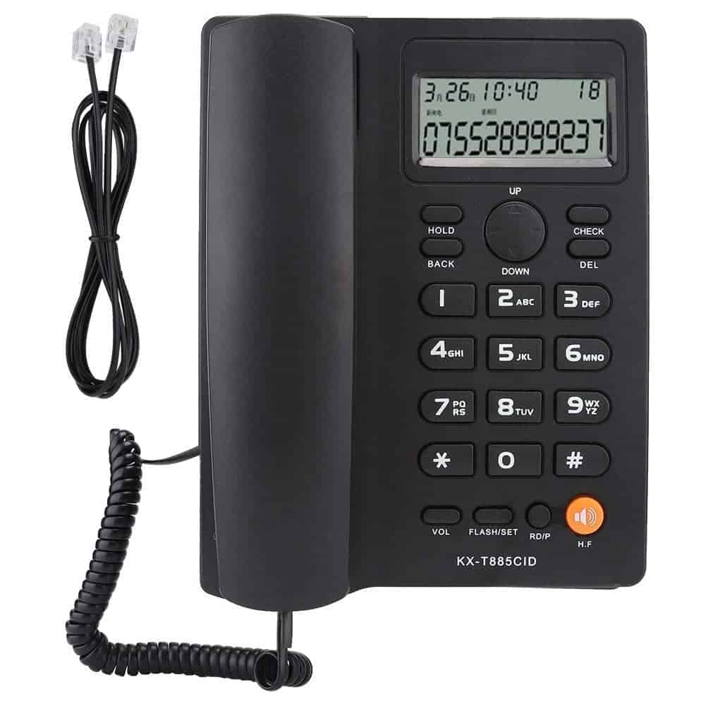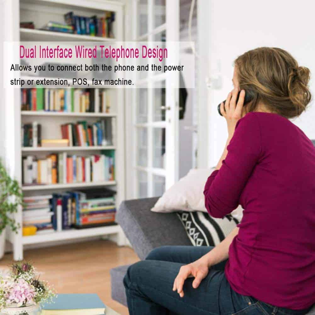 3. Teléfono con cable – El teléfono con cable tiene un diseño de doble interfaz que te permite conectar tanto el teléfono como la regleta de energía o la extensión, POS, máquina de fax.