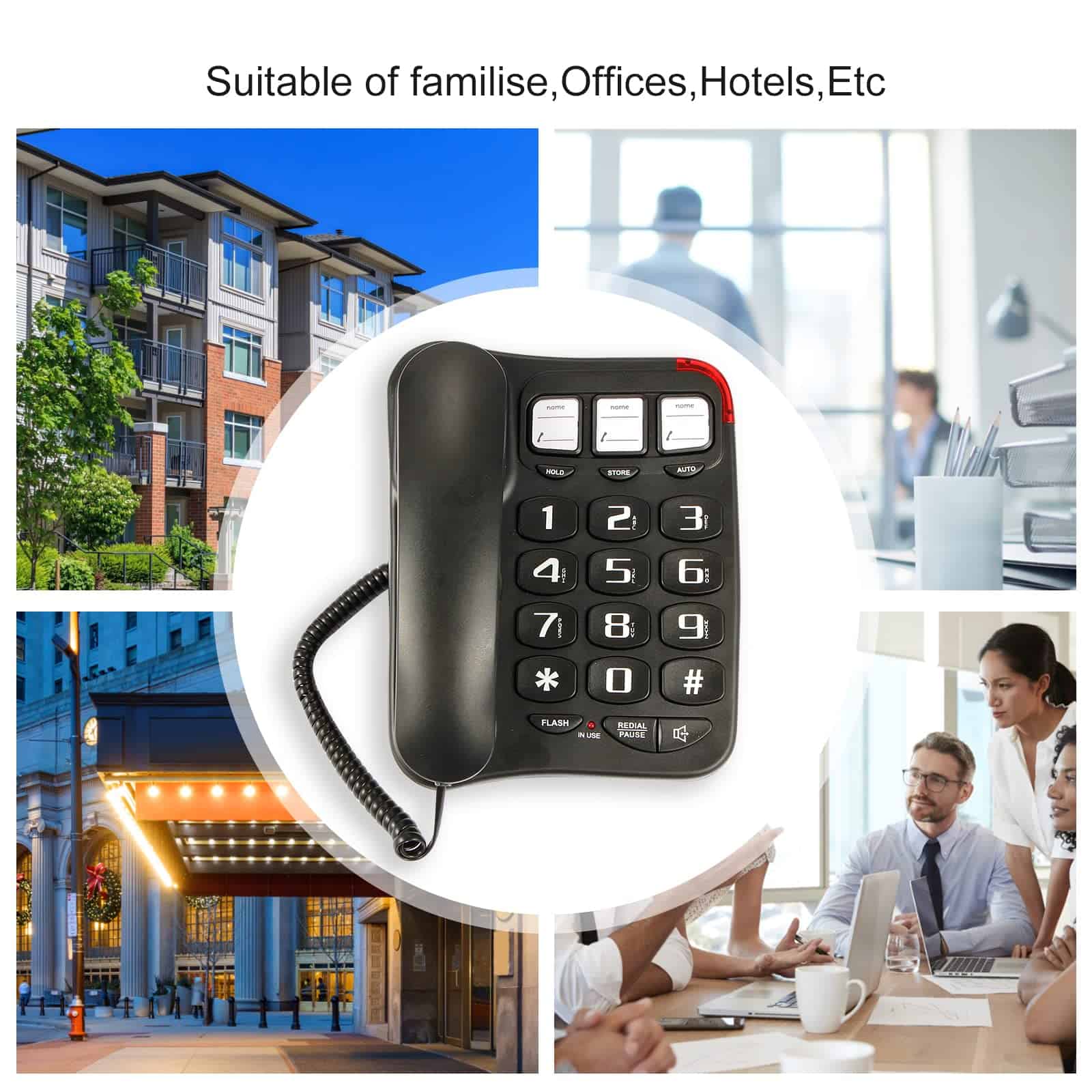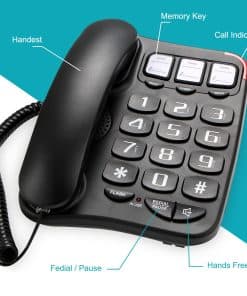 1. Teléfono con características de botón grande: nuestros teléfonos de botones grandes para personas mayores ofrecen una gama completa de funciones como altavoz manos libres, almacenamiento, automático, retención, flash, rellamada, marcación rápida de 10 números y control de volumen del timbre.